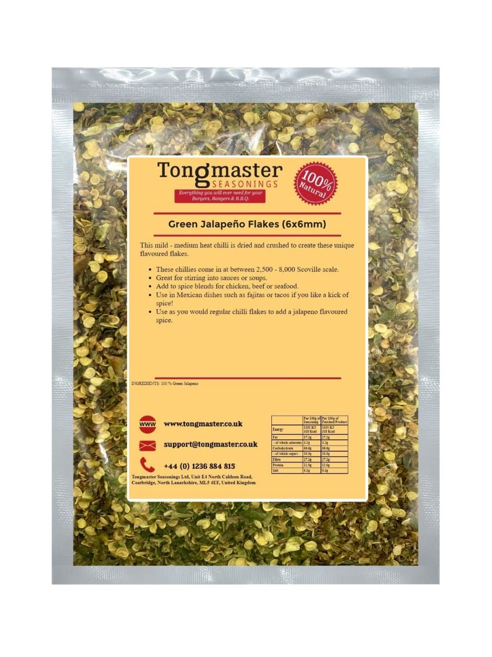 Use as you would regular chilli flakes to add a jalapeno flavoured spice. Use in Mexican dishes such as fajitas or tacos if you like a kick of spice!. Add to spice blends for chicken, beef or seafood. Great for stirring into sauces or soups. These chillies come in at between 2,500 - 8,000 Scoville scale.
