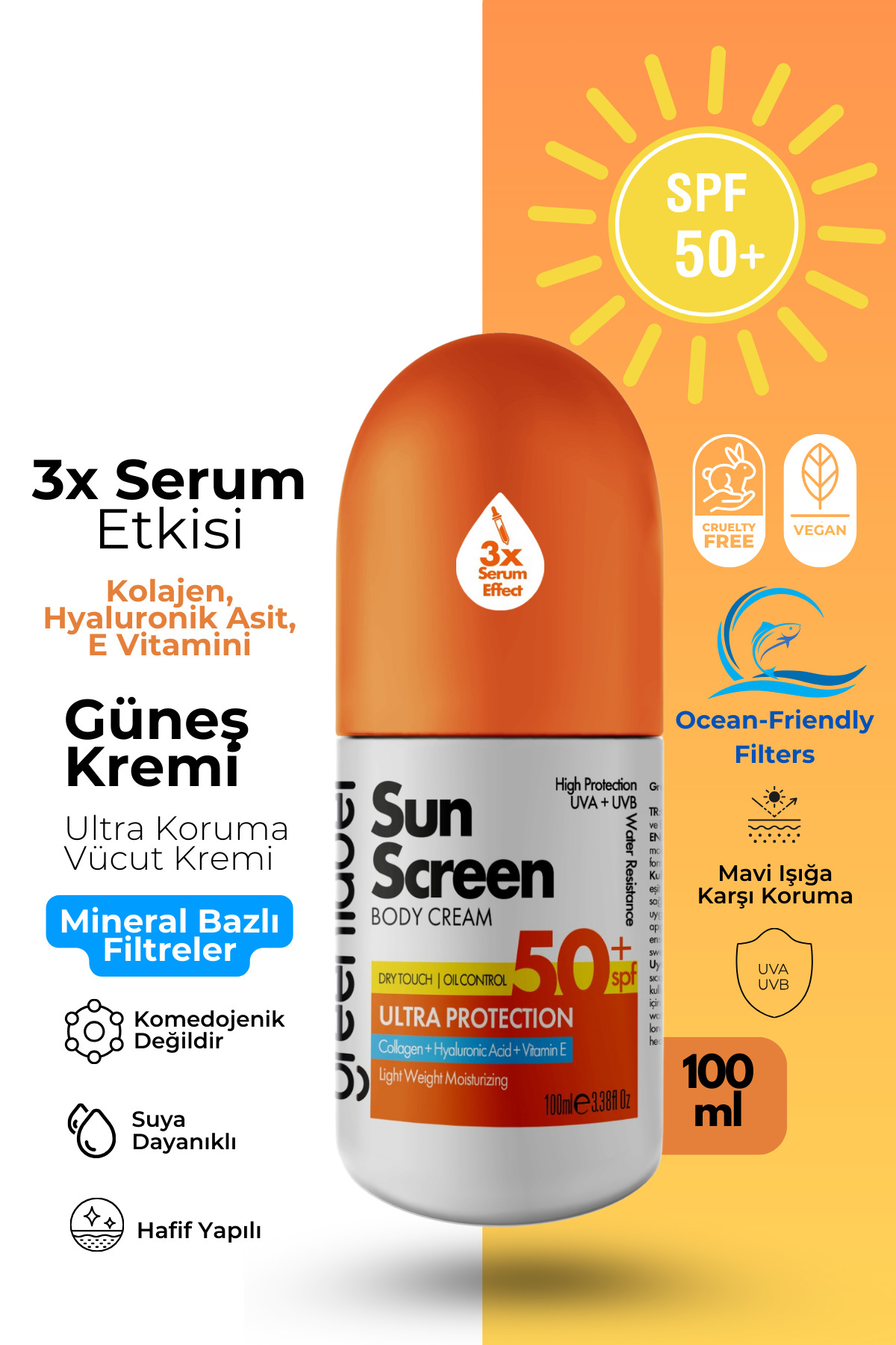 GREENLABEL SUN SCREEN CREAM BODY 50SPFGreenlabel 50SPF Günes Koruyucu Vücut Kremi, yüksek seviyede UVA ve UVB korumasi saglayan, suya dayanikli bir günes koruyucu kremdir. Panthenol, E vitamini, kolajen, hyaluronik asit ve mineral bazli filtreler içeren bu ürün, cilt üzerinde yagli bir his birakmadan yag kontrolü saglar ve hafif nemlendirici etki gösterir. Serum efektli bu formül, cildin ihtiyaç duydugu bakimi saglarken günesin zararli etkilerine karsi da koruma sunar.