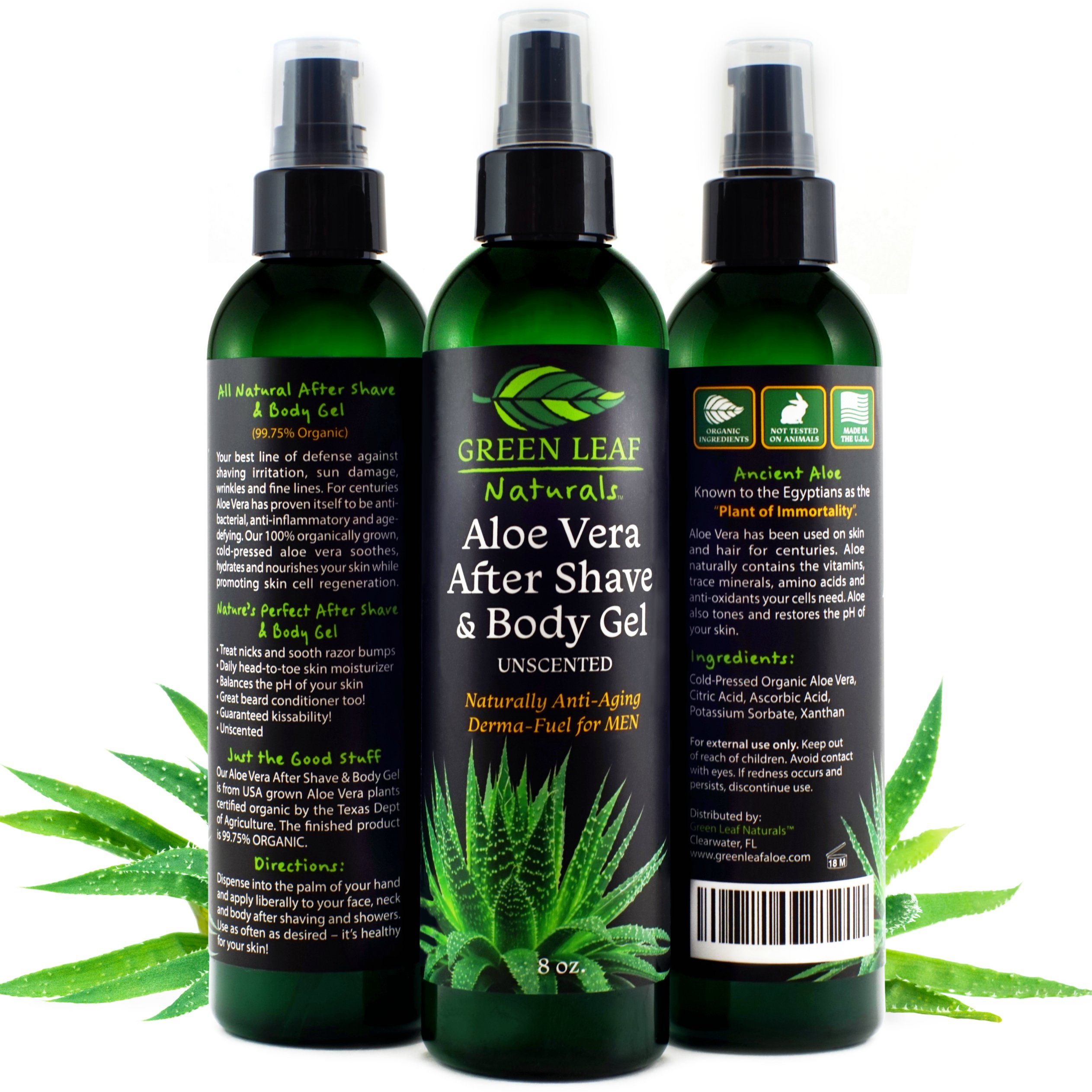 Green Leaf Naturals Aloe Vera After Shave & Body Gel | 99.75% Organic | Natural Anti-Aging Formula to Hydrate Soothe & Repair Dry Skin Irritation Redness & Prevents Razor Burn - 8oz
