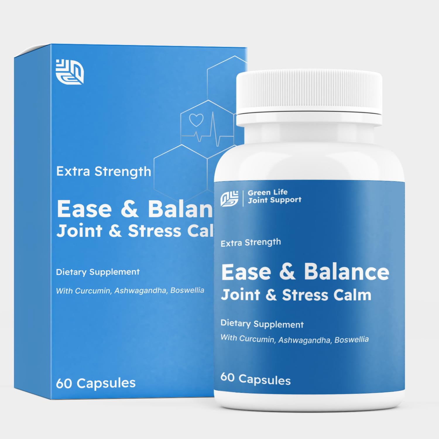 Green Life Org Premium Curcumin Phytosome 750mg Ashwagandha for Stress & Balance Sensoril & Boswellia Support for Mind & Body High Bioavailability 60 Capsules.