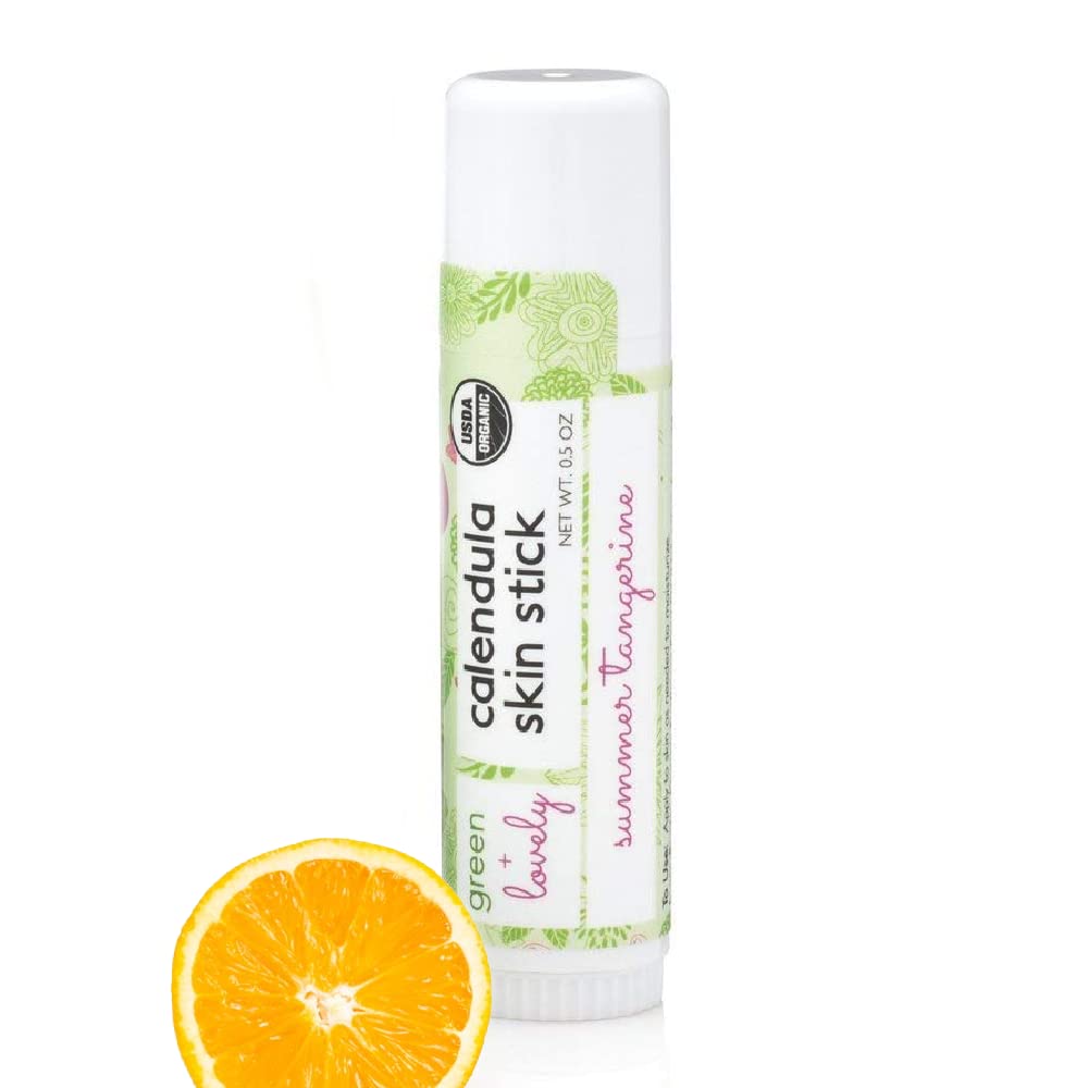 Green + Lovely Calendula Skin Stick Organic Lotion Sticks Moisturizing Balm Ointment Salve Multipurpose Hand Cream Body Bar, 0.5 oz., Summer Tangerine (1 Tube) Summer Tangerine 0.5 Ounce (Pack of 1)
