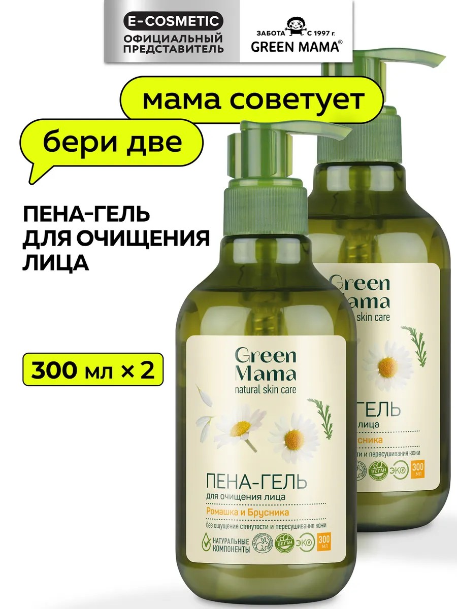 The cosmetic set includes: Green Mama Chamomile and Lingonberry Cleansing Foam-Gel, 300 ml - 2 pcs.