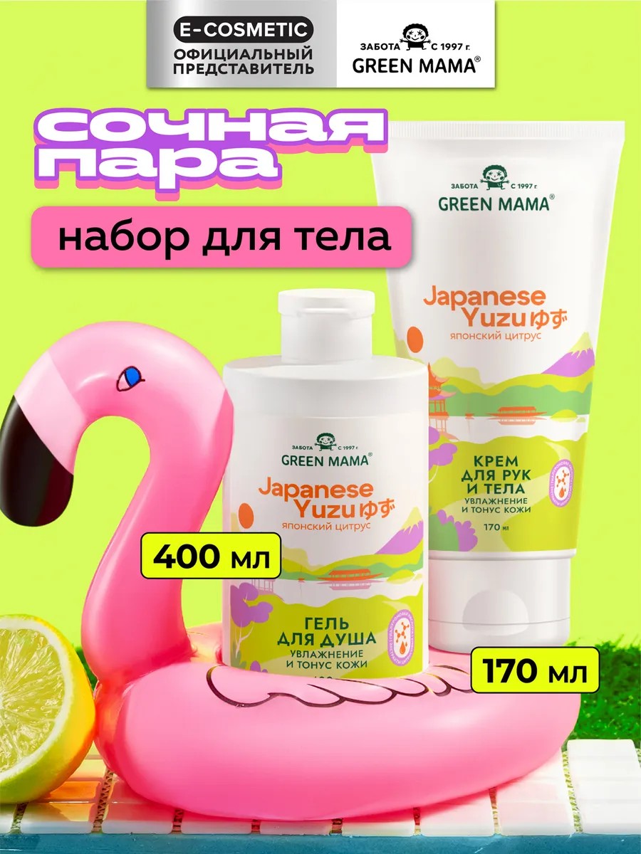 Green mama Набор гель для душа и крем для рук JAPANESE YUZU 400+170 мл