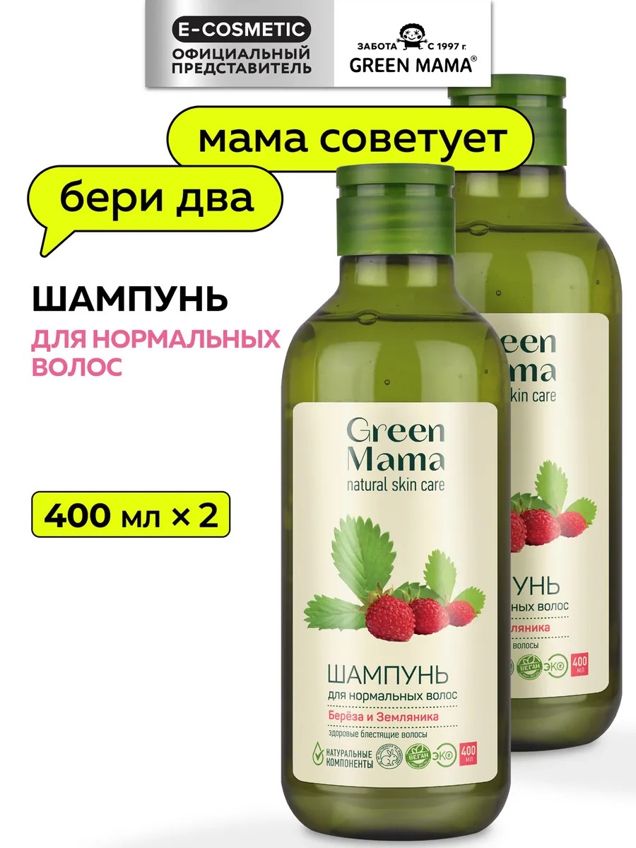 Green mama Шампунь для нормальных волос береза и земляника 400 мл-2 шт