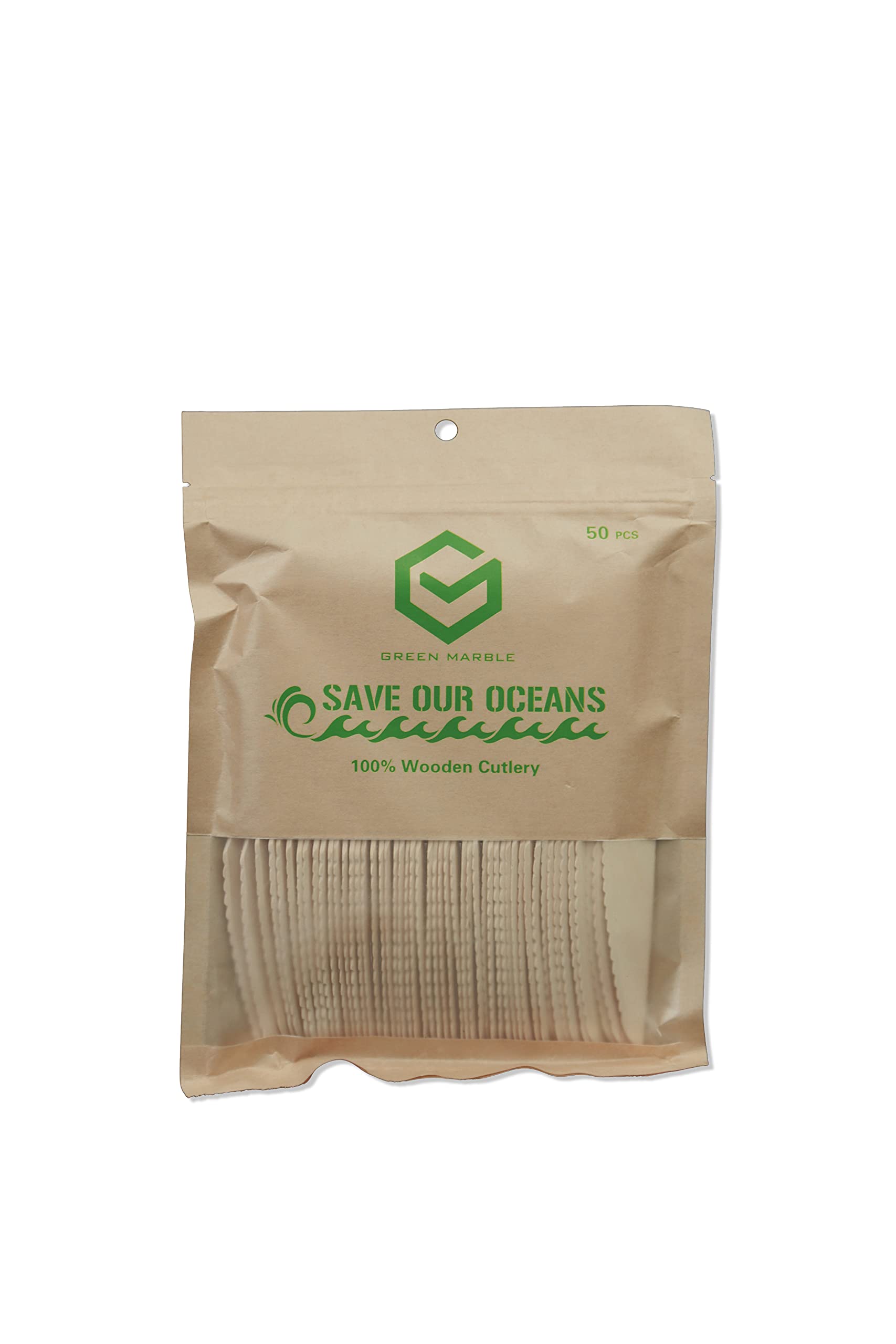 Green Marble Disposable Wooden Forks 6.25'' Pack of 50 pcs Special Durable Design Green Marble Premium Wood Utensils✓Wide Usage ---- Our products are suitable for following occasions, but not limited to ?School Lunch Box, ?Take out, ?Picnics, ?Parties, ?Wedding, ?Gathering, ?BBQ, ?Camping. ?Environmentally Friendly ---- Our material is from ?natural forest, our product and packaging materials are biodegradable. After we use and dispose to the earth, it will naturally decompose to soil in few months. Together, we can help reducing Plastic Single Use products. Most of the countries start banning plastic straws, now it's time to use WOODEN CUTLERIES?. ?Quality ---- Control With 20 YEAR experience? supplying products to Japan ? and European ? markets, our quality is top?of the notch. Thanks to our special design, our cutlery handle has SPINE, so our products are sturdy and strong. We machine sort then hand sort? our products to make sure defects are avoided. No? Splinter, No? Split, No? Stain. ? GMP ---- Certified (FOOD SAFETY) Food Safety is our priority. Our factory is GMP (Good Manufacturing Practice) certified, therefor all our products are 100 SAFE. Wood is natural, therefor 100 No Chemicals?, 100 Non-Toxic?, 100 BPA Free. We are family owned business, built and managed with care, we are the highest industry STANDARD. ?FSC ---- Certified We can proudly say, ALL Green Marble? wooden cutleries are FSC certified. Our factory was able to obtain FSC certification, because they insist to ONLY use sustainably harvested raw material. All our logs are legally harvested from sustainably managed forest, the forest was managed under strict forest management.
