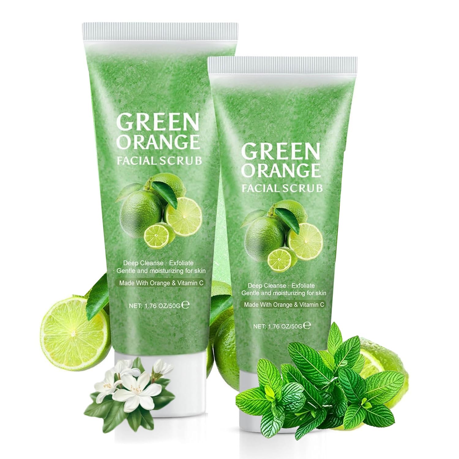 Green Orange Facial Scrub Face Exfoliator Facial Scrub for Deep Exfoliating Cleansing Skincare for Smoother Skin (2PC)