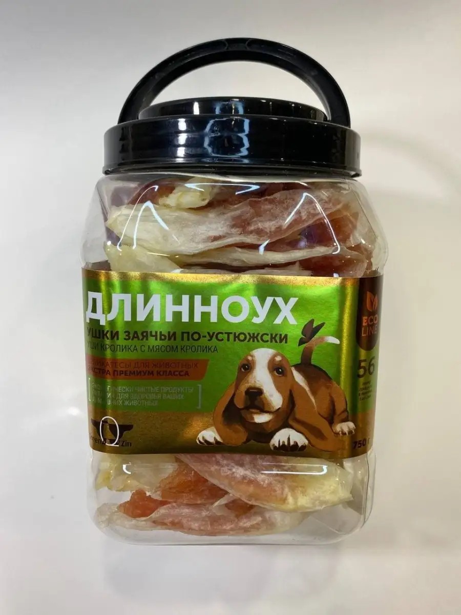 Long-eared treat (Rabbit ears). Ingredients: rabbit ears (cartilage), rabbit meat. Recommended for: all breeds of dogs as an ideal reward and a category-specific diet, as well as mini-breeds and puppies during the period of active growth, and females during pregnancy and lactation. Benefits of consuming this treat: - protects and strengthens teeth and gums - increases joint mobility - improves vascular elasticity.