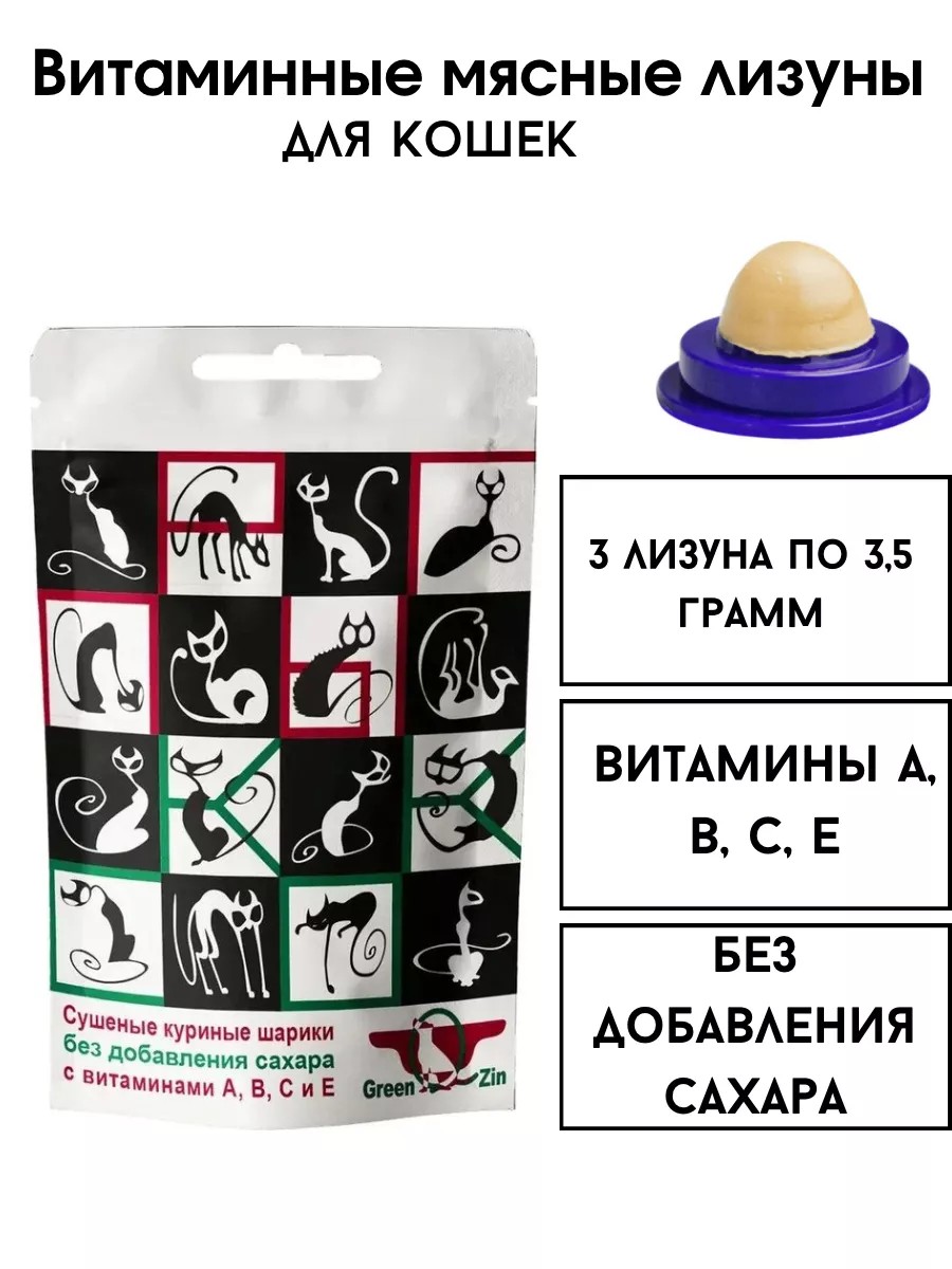 3 упаковки по 3,5 грамма. 4 часа непрерывного удовольствия! Всем нам хочется иногда побаловать себя чем-то вкусным и порадовать любимцев. Но, как и в случае с едой, лакомство для кошек должно быть специальное. Сбалансированное, вкусное и полезное лакомство для котов Green Qzin Прыг-Скок в виде витаминной конфеты из курицы, поможет вам проявить любовь к пушистому другу.