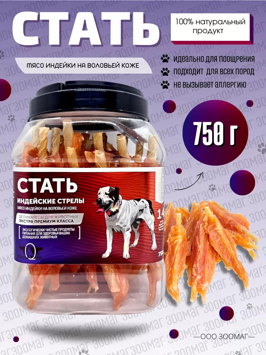 Лакомство СТАТЬ (Сушеное мясо индейки на воловьей коже) 100% натуральное СОСТАВ: мясо индейки, воловья кожа, пищевой глицерин, соль (с добавлением курицы) ПОЛЕЗНЫЕ СВОЙСТВА: укрепление костей, связок, суставов; нормализует перестальтику кишечника; улучшение состояния кожного покрова, шерсти и когтей. РЕКОМЕНДУЕТСЯ: Мелким породам и щенкам, в период активного роста, Профессиональные дрессировщики и собаководы-любители испытывают определенные трудности с выбором лакомств для награды мохнатых друзей: печенье крошится, сыр окисляется, большинство продающихся вкусняшек слишком большие по размеру и плохо ломаются, и при этом довольно дорогие.