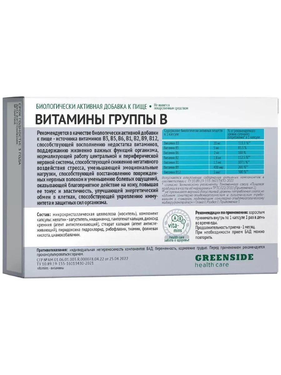 Green Side B vitamins in 30 pcs. capsules weighing 300-2 pcs