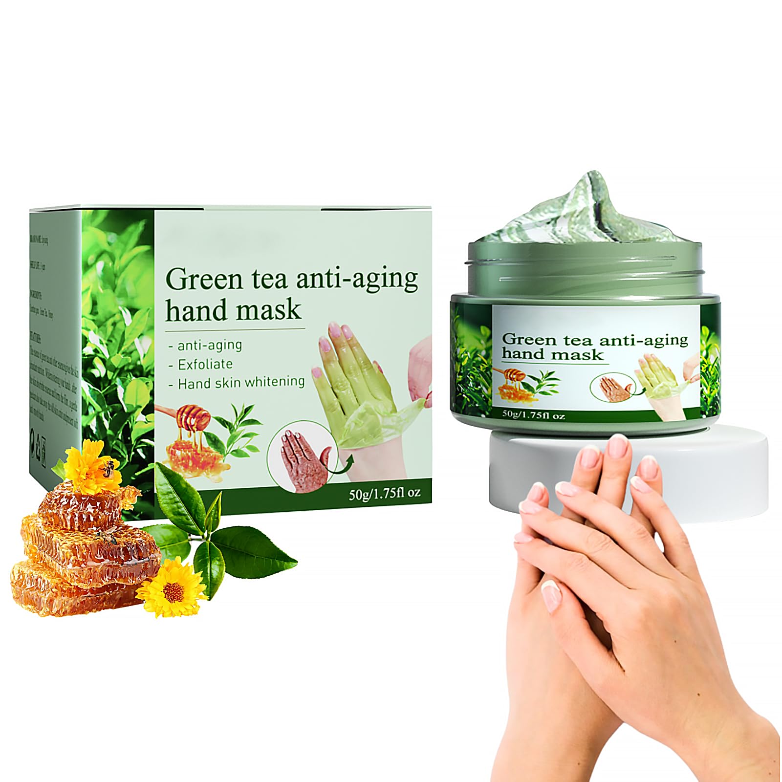Natural Green Tea Honey Hand Mask: Gently apply on hands to form a moisturizing film, moisturizeand purify tender skin, help to improve dry and rough hands,and make hands smooth and delicate like silk! Main Advantages of Green Tea Hand Peeling Mask: ? Nourishing & Moisturising ? Peel Away hard dead Skin ? Exfoliates Rough Skin ? Prevents Dryness User Manual of Green Tea Tearing Hand Mask: 1. Clean and dry hands. Apply the Hand Mask Moisturizing evenly to the back of both hands, about 1-2mm thick. 2.After applying evenly, let it sit for 20-30 minutes until the hand mask forms a film. 3. After the Green Tea hydrating hand masks is fully coated, gently peel off along the edge. (For those with heavy hand hair, there may be slight pain) Warm Tips: Before using any new product, we recommend that you try it on the skin behind your ear. If you experience any discomfort or skin reactions, please stop using it. Children under three years old should not use it. SAFETY WARNING For external use only. Avoid contact with eyes. Keep away from naked flame or direct heat sources.