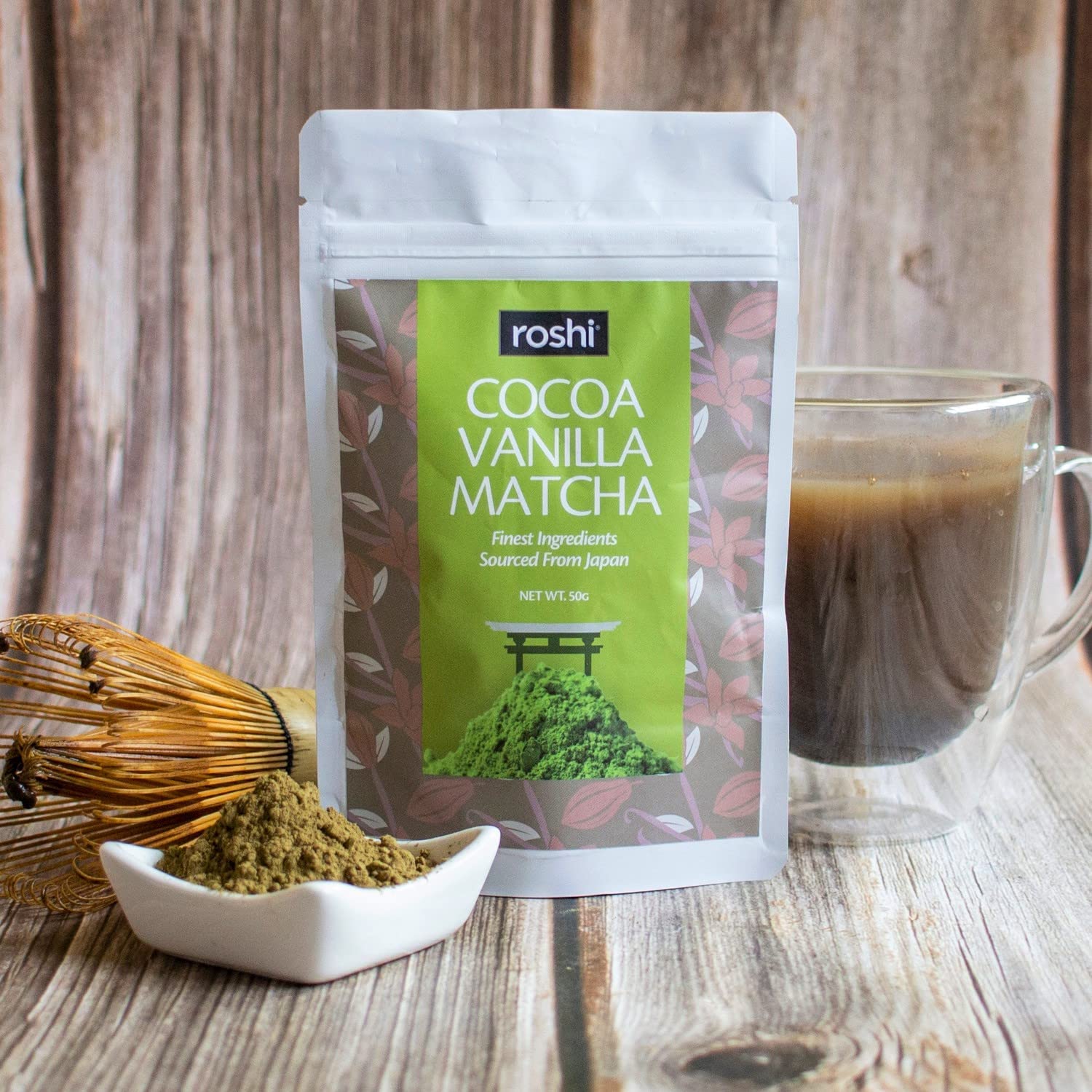 Green Velly Roshi Cocoa Vanilla Matcha 50 g Authentic Japanese Matcha Délicious Chocolat Matcha with Vanilla Energizing Superfood to improve Focus and promotes overall health