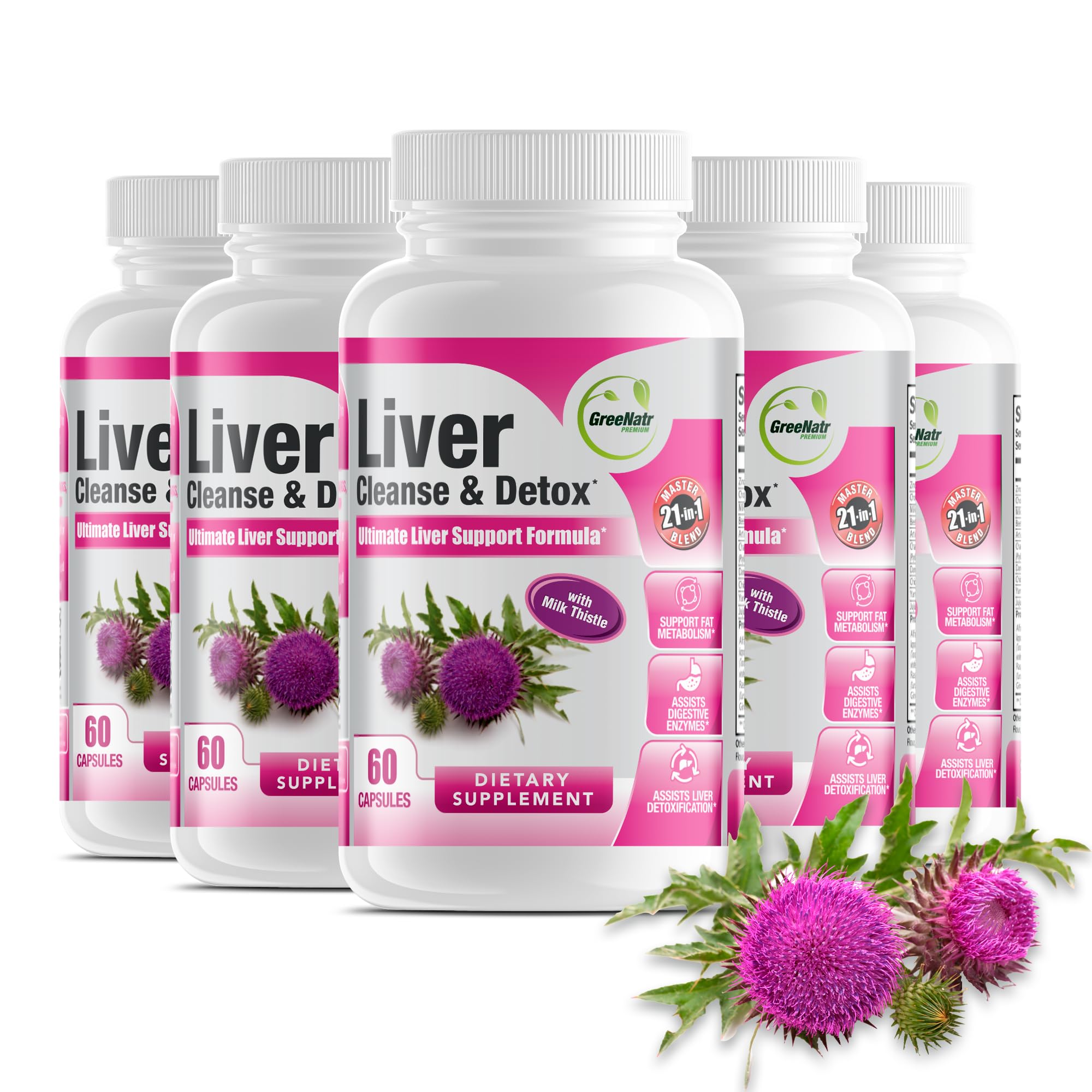 GreeNatr Liver Cleanse Detox & Repair Formula Milk Thistle Berberine Ginger Beet Root Dandelion Root Artichoke Extract and Chanca Piedra for Optimal Liver Health Support (6 Bottles) 60 Count (Pack of 6)