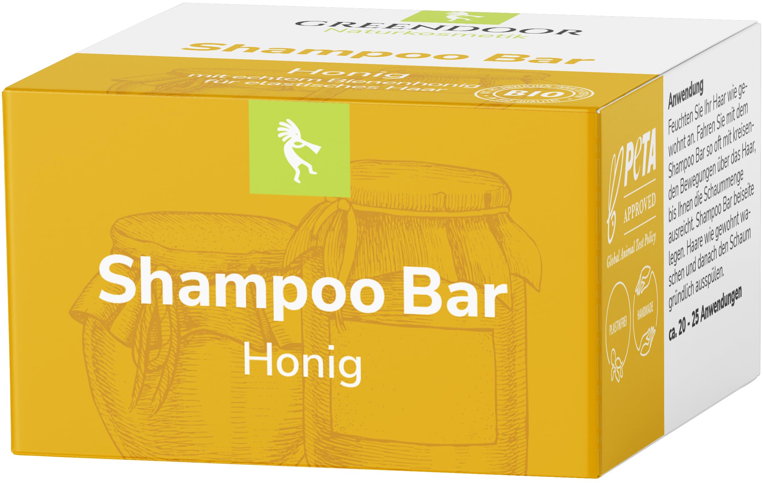 Greendoor Natural Cosmetics: 1) High-quality raw materials. Plant extracts obtained using a patented process preserving the natural strength of the plant actives - 2) Raw materials preferably from organic farming - 3) Carefully handcrafted, preserving the natural character of the raw materials - 4) Natural recipes with few different raw materials reduced allergenic potential - 5) Always free of mineral oils, laureth sulfates, parabens, and silica. One. Handcrafted in the Greendoor natural cosmetics factory in Upper Bavaria - Made in Germany, no imports. No welding of the shampoo bar in plastic. Ideal for dry hair, but generally suitable for all hair types. Sulfate-free free of sulfates, silicones, artificial colors, mineral oils, palm oil, preservatives, parabens, PEGs, emulsifiers, and of course, no animal testing (Greendoor is listed with PETA). Perfectly manageable hair – Natural treatment without palm oil, with organic shea butter, organic coconut oil, organic broccoli seed oil, organic cocoa butter, and aloe vera. 2-in-1 product: ideal for use in the shower as a shower gel. Eco-friendly solid shampoo for daily hair washing – Reduces plastic waste: foldable paper box, perfect for holidays (leak-proof and no carry-on baggage restrictions), biodegradable, sulfate-free, and dye-free.GREENDOOR Shampooing bio Bar Miel 75 g, shampooing doux sans huile de palme, sulfate de silicone, cosmétique naturel à l'aloe vera, soin naturel pour cheveux secs, unisexe Miel 75 g (1er Pack)Cosmétique naturel de Greendoor : 1) matières premières de haute qualité. Extraits de plantes obtenus selon un procédé breveté préservation de la force naturelle des actifs végétaux - 2) Matières premières de préférence issues de l'agriculture biologique - 3) Fabrication soignée à la main, préservation du caractère naturel des matières premières - 4) Recettes naturelles avec peu de matières premières différentes potentiel allergène réduit - 5) Toujours sans huiles minérales, sulfates de laureth, parabens, silice. One. Fabriqué à la main dans la manufacture de cosmétiques naturels Greendoor en Haute-Bavière - Fabriqué en Allemagne, pas d'importation. Pas de soudure de la barre de shampoing dans le plastique. Idéal pour les cheveux secs, mais convient en principe à tous les types de cheveux. SANS Sulfates sans sulfate, sans silicone, sans colorants artificiels, sans huiles minérales, sans huile de palme, sans conservateur, sans paraben, sans PEG, sans émulsifiants, bien sûr, sans expérimentation animale (Greendoor est répertorié en PETA). Cheveux parfaitement peignables – Soin naturel sans huile de palme, avec beurre de karité bio, huile de coco bio, huile de graines de brocoli bio, beurre de cacao bio et aloe vera. Produit 2 en 1 : idéal pour la douche comme gel de douche fixe. Shampooing solide respectueux de l'environnement pour le lavage quotidien des cheveux - Prévention des déchets plastiques : boîte pliante en papier, parfaite pour les vacances (ne fuit pas et pas de problème de bagage à main), biodégradable, sans sulfate, sans colorant.