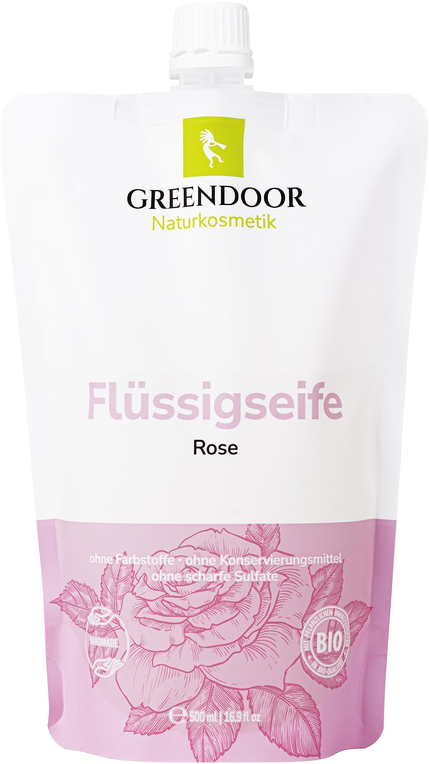 GREENDOOR Recharge de savon liquide ROSE 250 ml à base d'huile de coco bio, cosmétique naturel biodégradable, végétalien, sans paraben, savon naturel fumé à la main, savon liquide liquide pour les mains sans expérimentation animale