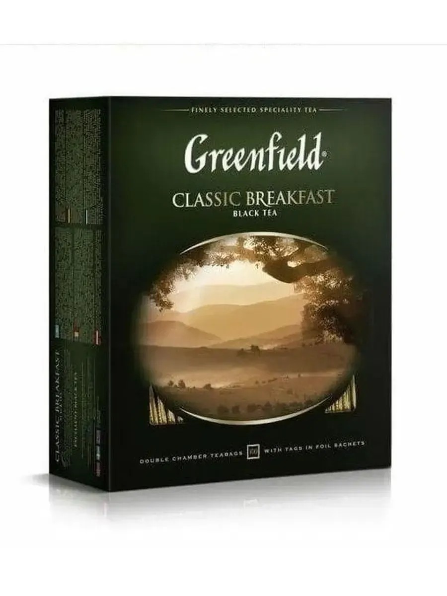 Greenfield, Classic Breakfast Black Tea, 100 tea bags. The strong character of Classic Breakfast reveals what teas grown on renowned plantations in the foothills of the Himalayas are renowned for – a tart, juicy flavor and a powerful, energizing effect.