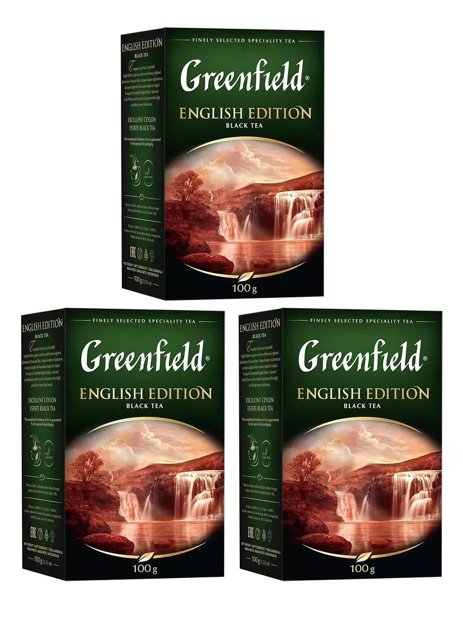 Greenfield Чай черный листовой English Edition 100 г, 3 шт. Изысканный цейлонский чай, выращенный на всемирно известных высокогорных плантациях Нувара Элия. Уникальное место сбора и плотная скрутка чайного листа создают сбалансированный вкус и нежный аромат с медово-цветочными нотами. Хорошо освежает и утоляет жажду. Храните его в сухом, хорошо проветриваемом помещении без посторонних запахов с относительной влажностью воздуха не выше 70%. Greenfield English Edition не содержит искусственных ароматизаторов и ГМО, что делает его безопасным и натуральным выбором для вашего здоровья.