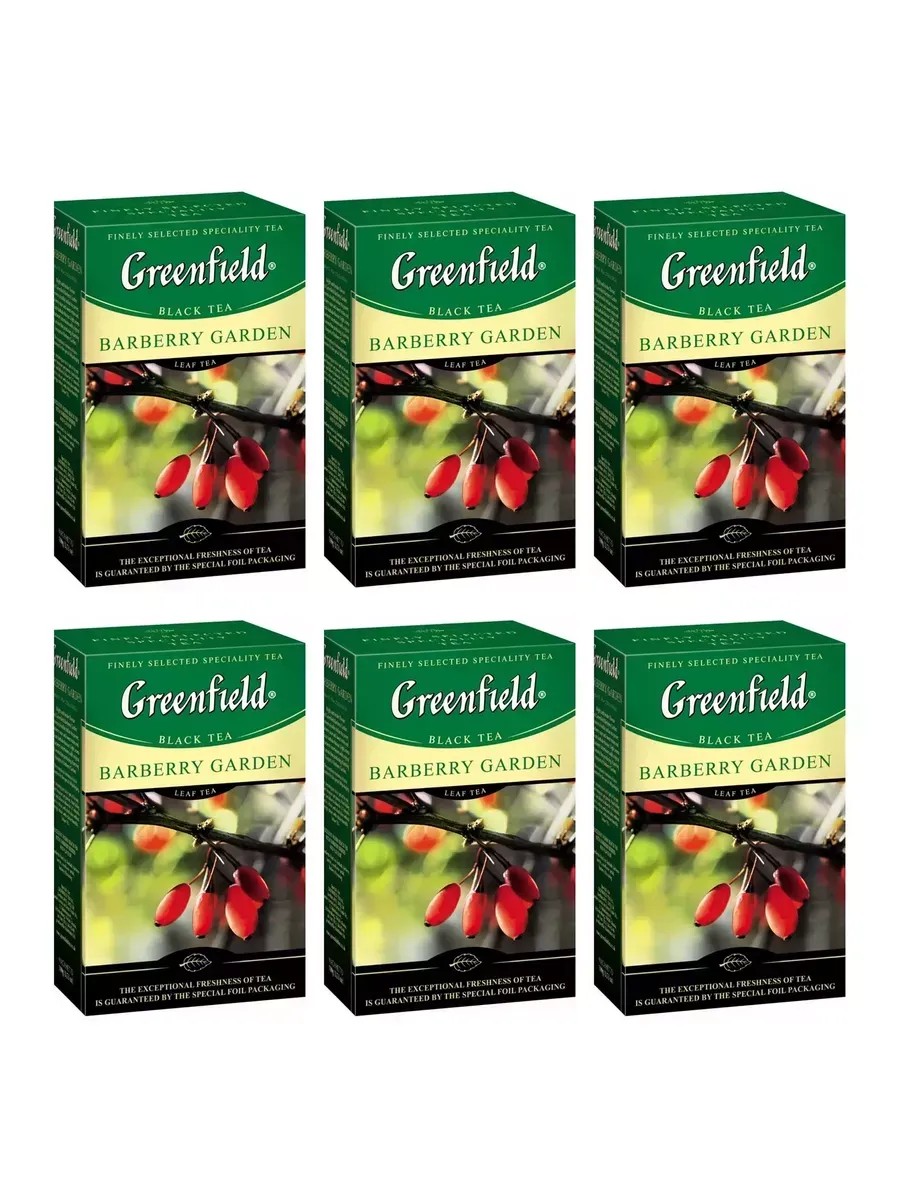Greenfield Чай черный Barberry Garden, 100 г, 6 шт. Откройте для себя насыщенный и ароматный чай Greenfield Barberry Garden (Гринфилд Барбери Гарден), который производится в Индии. Этот чай обладает уникальным вкусом и ароматом, благодаря сочетанию индийского чая с ягодами барбариса и гибискусом. В ярком вкусе Greenfield Barberry Garden душистый аромат барбариса переплетается с естественным чайным ароматом. Барбарис вносит в композицию характерные сладкие ноты, а гибискус придает легкую свежую кислинку. Чай Greenfield Barberry Garden упакован в картонную коробку весом 100 грамм. Храните его в сухом, хорошо проветриваемом помещении без посторонних запахов с относительной влажностью воздуха не выше 70%. Greenfield Barberry Garden не содержит искусственных ароматизаторов и ГМО, что делает его безопасным и натуральным выбором для вашего здоровья.
