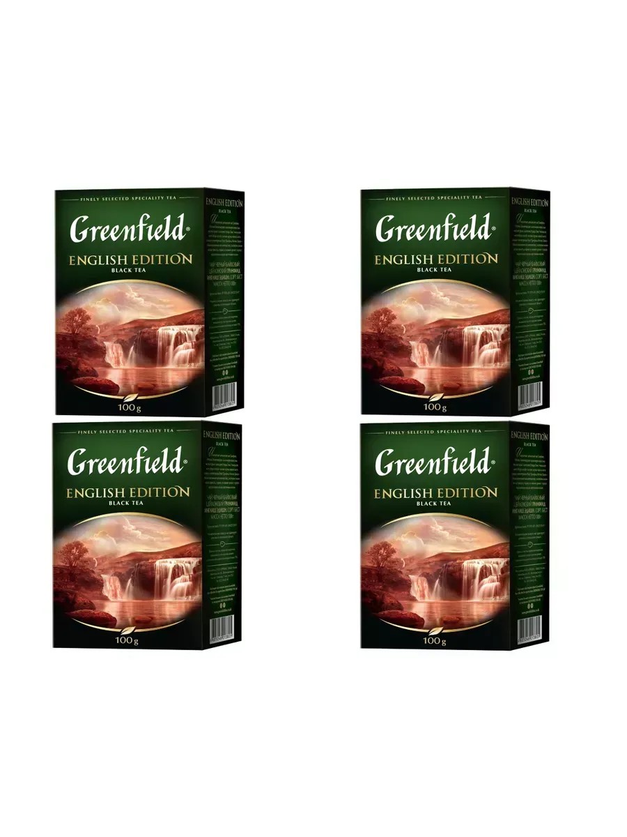 Greenfield, чай черный English Edition, листовой, 4 уп по 100 г. Изысканный цейлонский чай, выращенный на всемирно известных высокогорных плантациях Нувара Элия. Уникальное место сбора и плотная скрутка чайного листа создают сбалансированный вкус и нежный аромат с медово-цветочными нотами. Листовой черный чай часто предпочитается своим разнообразием вкусовых качеств - от сладковатых и фруктовых до более насыщенных и даже дымчатых оттенков, в зависимости от его сорта и происхождения. Он может быть употребляться как самостоятельно, так и с добавлением молока, сахара или специй. Более крепкий и тёмный по сравнению с зелёным чаем, он обычно содержит больше кофеина, что делает его популярным выбором для тех, кто ищет энергетический заряд.