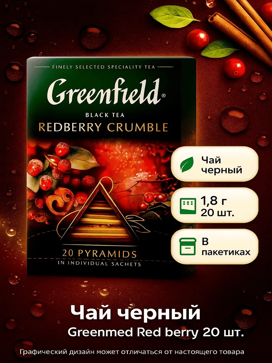 Полное наименование товараЧай черный Greenfield Redberry Crumble в пакетиках 1,8 г x 20 шт
