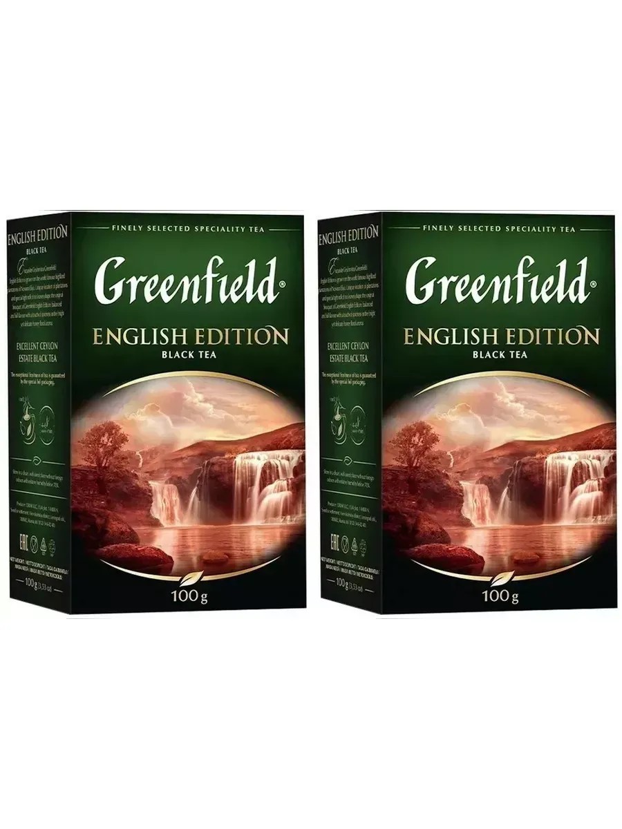 Greenfield Чай черный листовой English Edition 2 упаковке по 100 гр. Изысканный цейлонский чай, выращенный на всемирно известных высокогорных плантациях Нувара Элия. Уникальное место сбора и плотная скрутка чайного листа создают сбалансированный вкус и нежный аромат с медово-цветочными нотами.