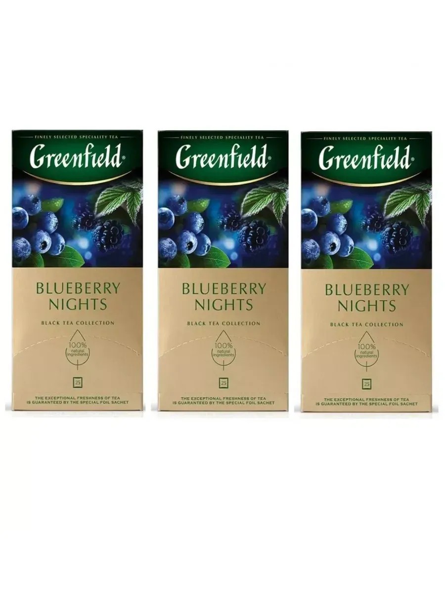 Greenfield Чай Blueberry Nights черный с черникой 25 пакетиков, 3 уп