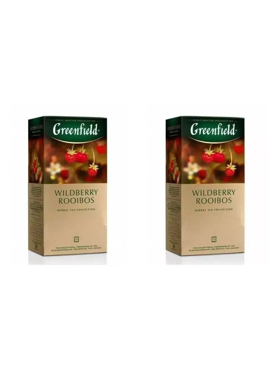 Greenfield, Чай травяной Wildberry Rooibos, 25 пакетиков. Естественный сладковатый вкус этнического напитка Вайлдберри Ройбош из молодых побегов южноафриканского кустарника ройбош становится еще более выразительным благодаря чудесному аромату земляники. Тонкий оттенок клюквы подчеркивает свежесть природного букета. В комплекте 2 штуки.