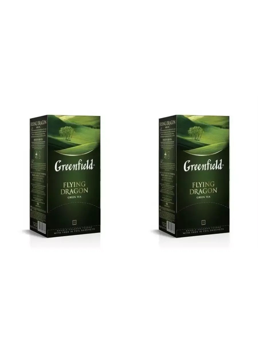 Greenfield. Чай зелёный Flying Dragon, 25 пакетиков. Китайский зеленый чай, собранный в горах, имеет особенный вкус. Чайные кусты здесь дают некрупные, очень нежные листья, которые после обработки приобретают серебристый оттенок. Flying Dragon пленяет мягким вкусом и легким цветочным ароматом, хорошо освежает и превосходно восстанавливает силы. В комплекте 2 штуки.