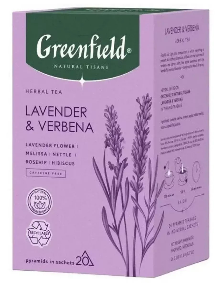 Greenfield, чай травяной Natural Tisane Lavender & Verbena, в комплекте 1 упаковка, 20 пирамидок по 1,8 гр.