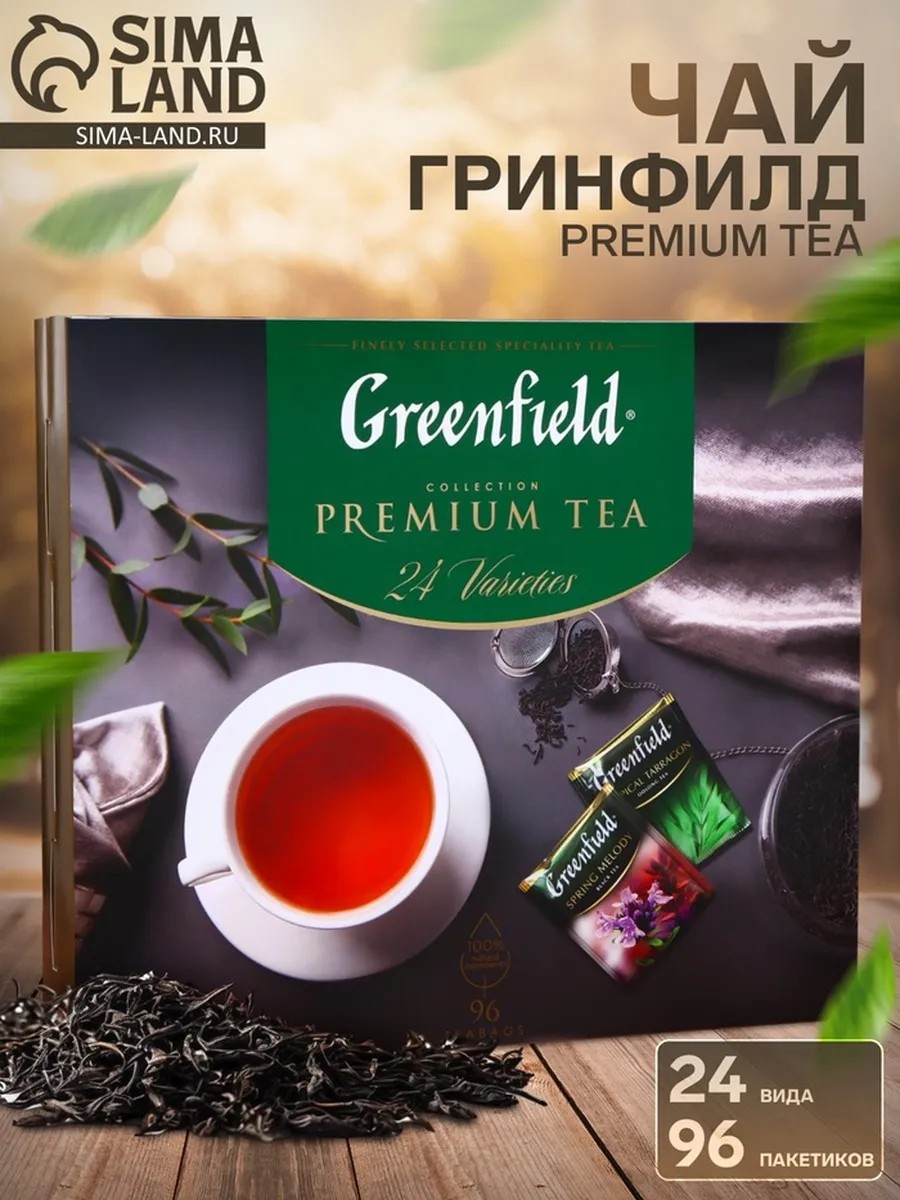 Greenfield Премиальный чай, 24 вида, 96 пакетиков по 1.8 г