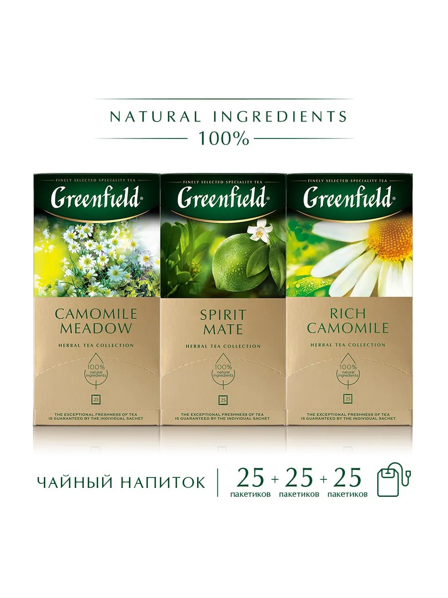 Camomile Meadow - тонкие ноты душистой мелиссы оживляют мягкий цветочный вкус ромашки в букете Greenfield Camomile Meadow. Неожиданный акцент — дерзкий и жизнерадостный аромат личи — создает ощущение пленительной свежести и чистоты.