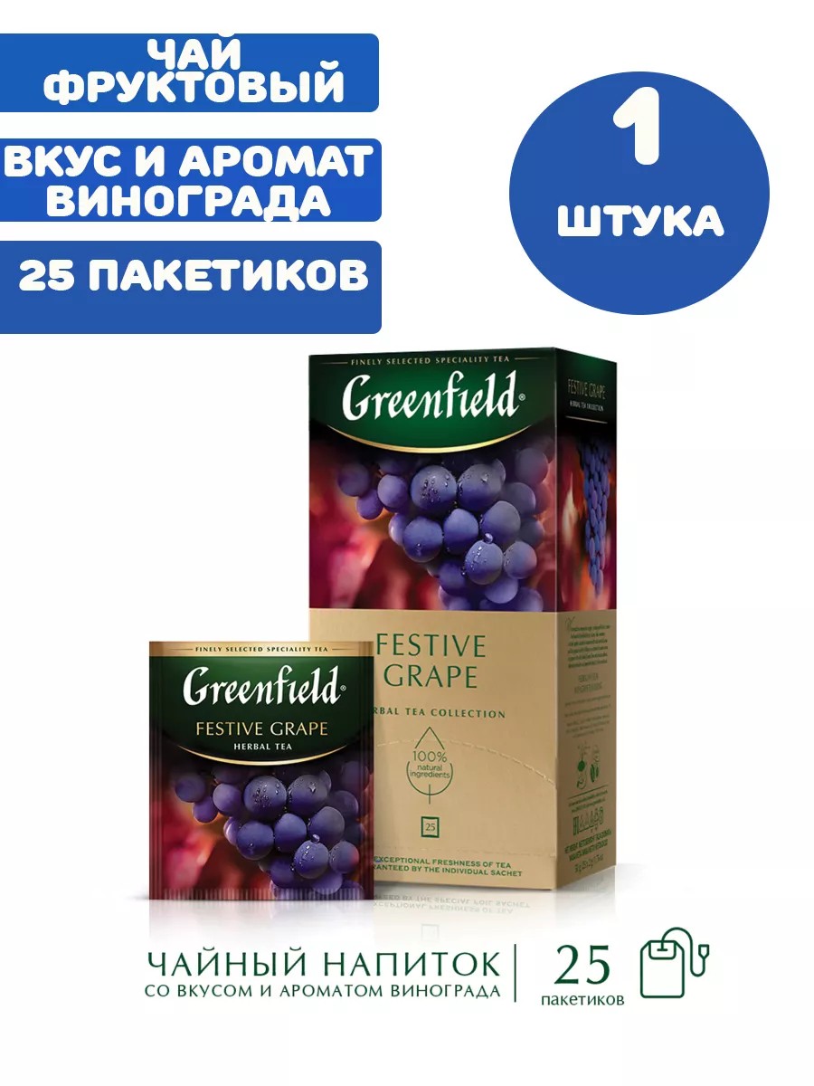 | Комплектация | Чай GREENFIELD "Festive Grape" фруктовый, 25 пакетиков в конвертах по 2 г |