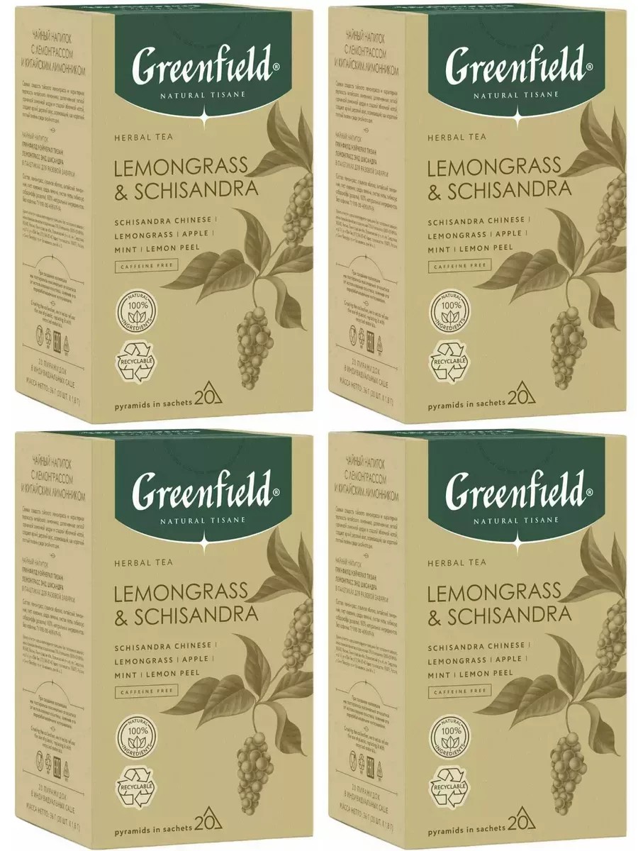 Greenfield, чай в пирамидках Natural Tisane Lemongrass & Schisandra, 4 уп по 20 пак.