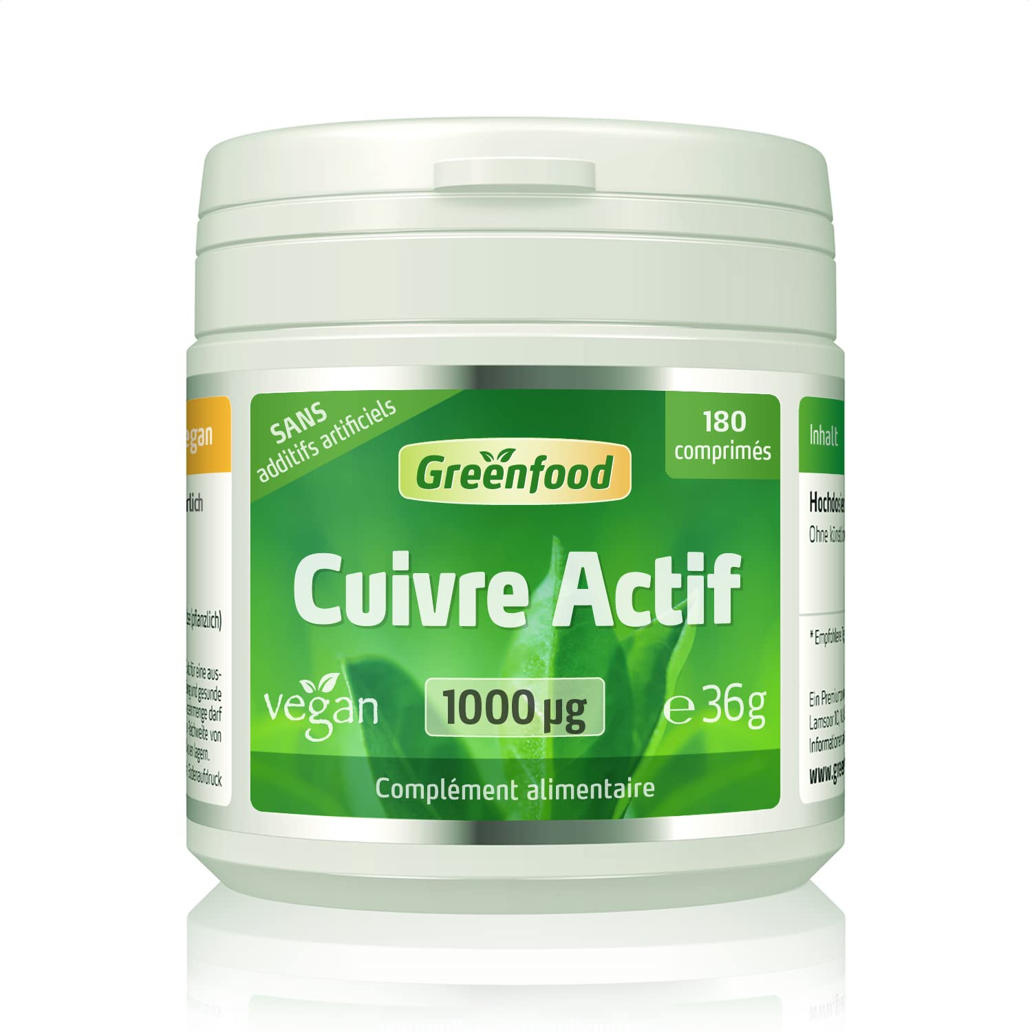 Greenfood Active copper 1000 g high dose 180 tablets - for normal energy metabolism no artificial additives no genetic engineering vegan.