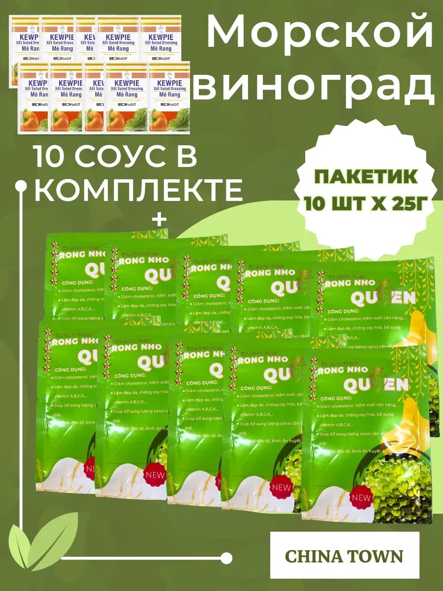 Sea grapes combine a pleasant, light seafood flavor with great health benefits! Therefore, connoisseurs of healthy food and lovers of Japanese and Pan-Asian cuisine will appreciate this delicacy.