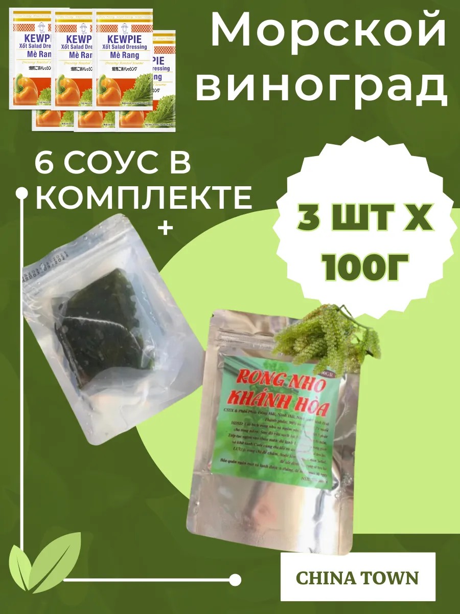 GREENFOOD Морской виноград пищевой Уми Будо 3*100 гр + 6 соусы
