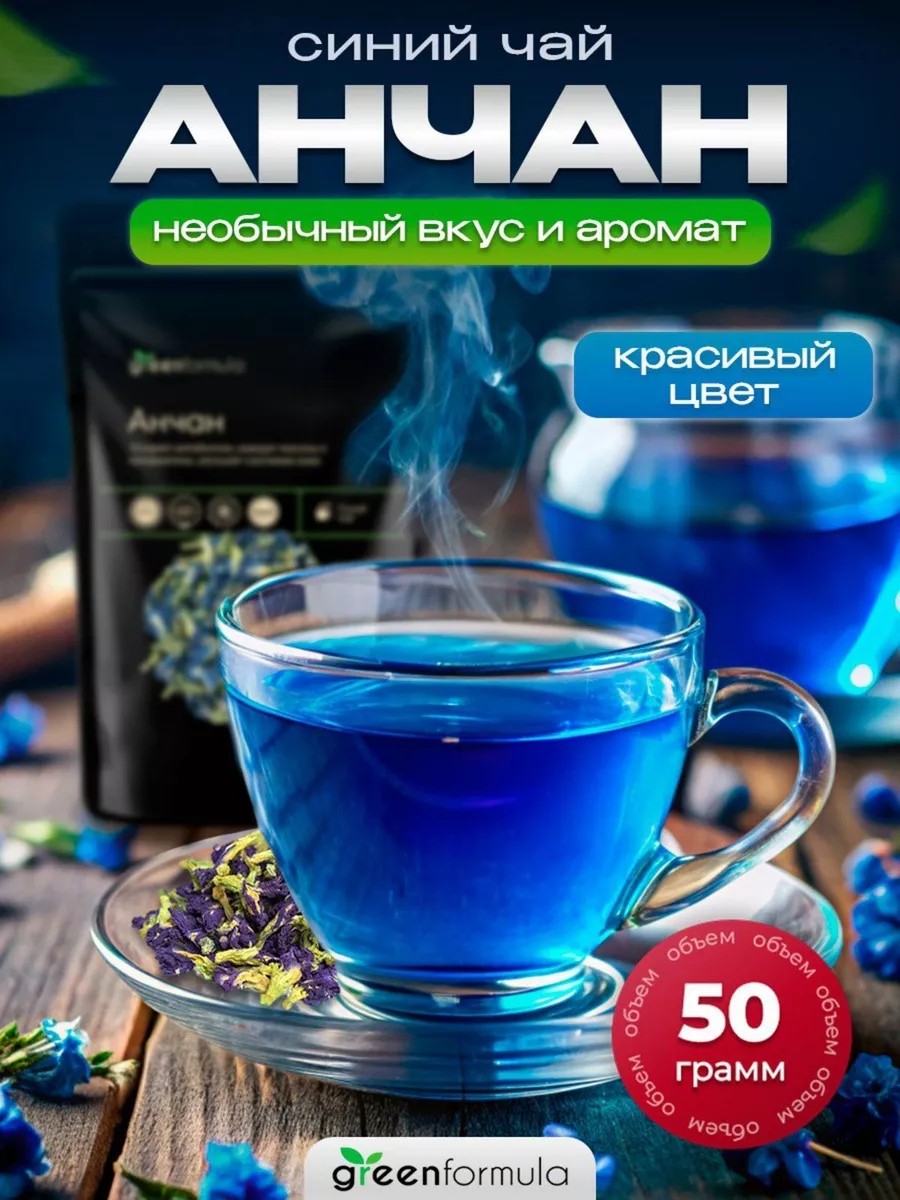 Премиальный синий чай анчан без кофеина - жемчужина Таиланда. Упаковка 50 грамм. Он издревле ценится на востоке за свой потрясающий вкус и уникальные полезные свойства. Жители Азии называют чайный напиток Голубая Орхидея. Травяной тайский чай готовят из бутонов цветков и листьев растения под названием клитория тройчатая или голубой горошек. Ее бутоны придают заварке красивый синий цвет.