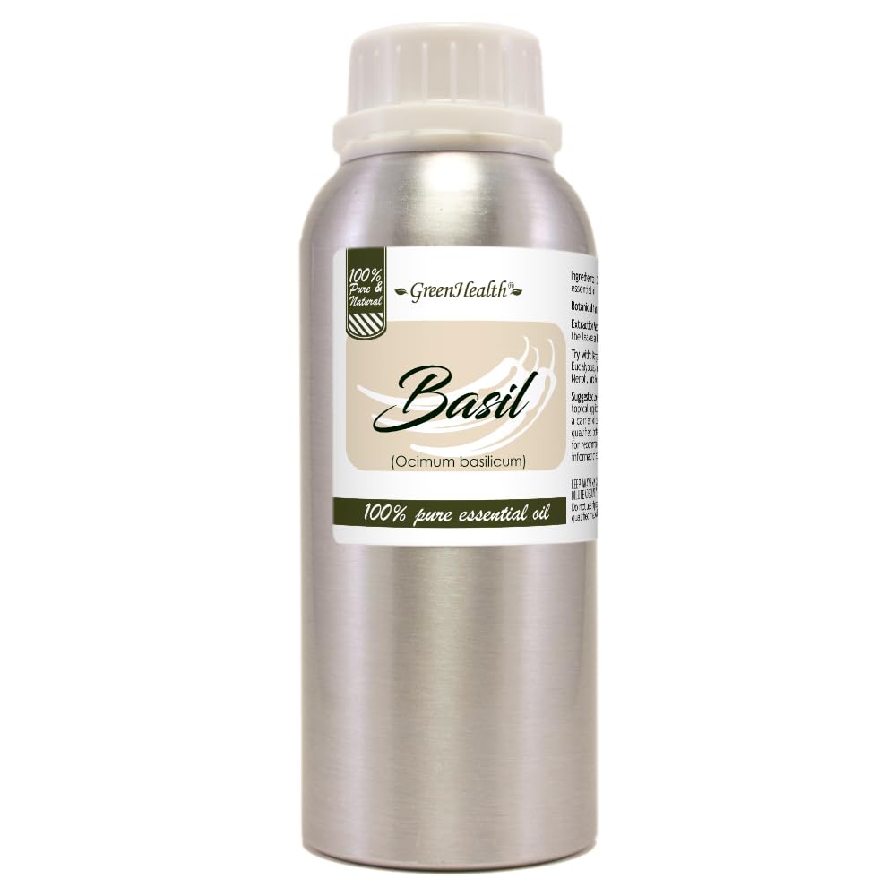 GreenHealth Basil Essential Oil 8 fl oz (237 ml) Aluminum Bottle w/Plug Cap 100% Pure Essential Oil