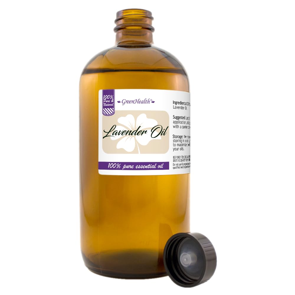 GreenHealth Lavender Essential Oil 16 fl oz (473 ml) Amber Glass Bottle 100% Pure & Uncut Bulk Lavender Oil for Diffuser, Aromatherapy, Soap Making, Candles & DIY Lavender 16 Fl Oz (Pack of 1)