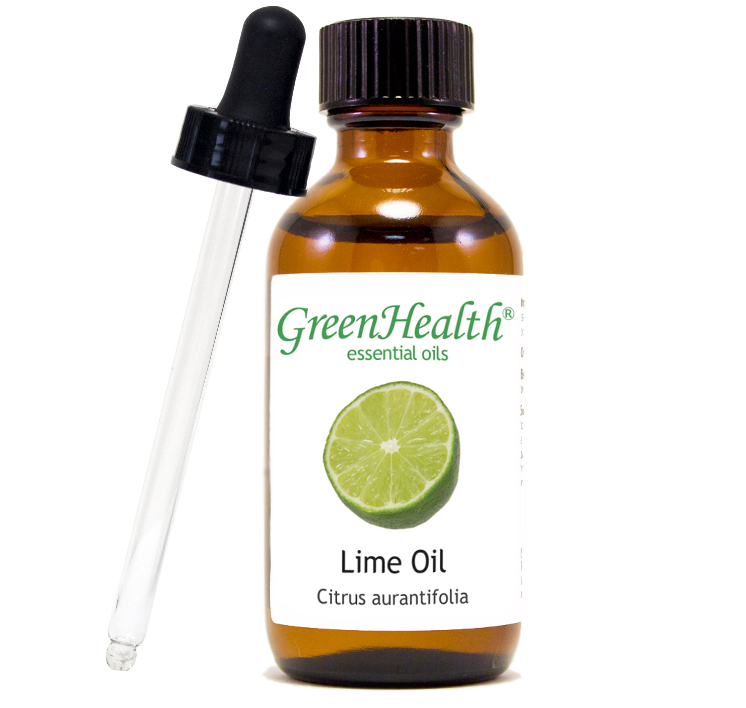 GreenHealth Lime 2 fl oz (59 ml) Glass Bottle w/Glass Dropper 100% Pure Essential Oil