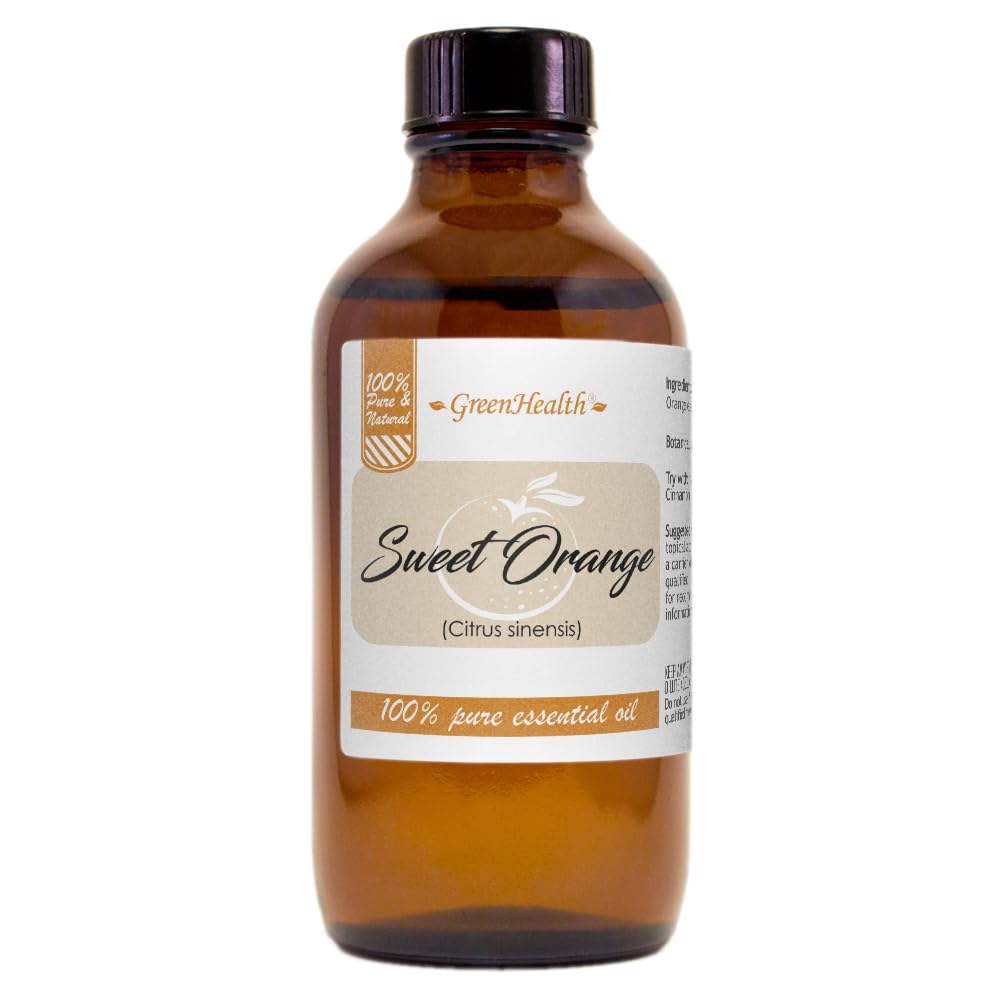 GreenHealth Sweet Orange Essential Oil - 100% Pure & Undiluted - 4 fl oz Amber Glass Bottle - Refreshing Citrus Aroma for Aromatherapy, Diffusers & DIY Uses