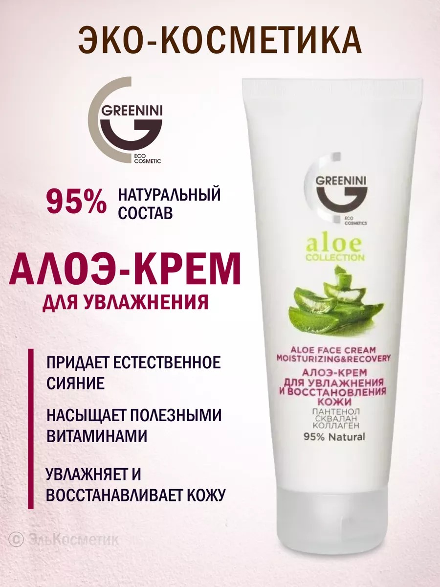 GREENINI Крем для лица ЭКО косметика / увлажнение / восстановление / с алоэ 75 мл