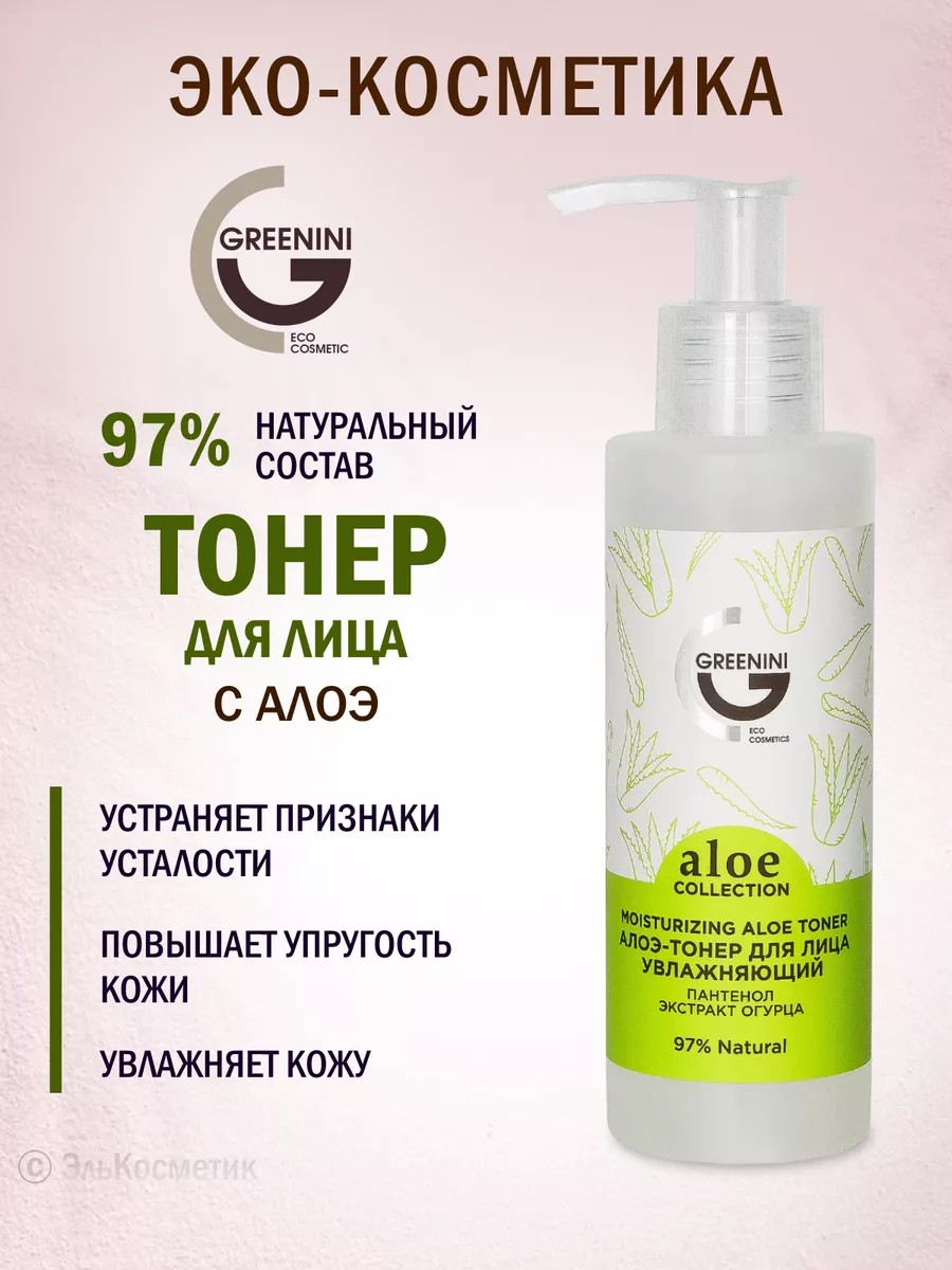 GREENINI Тонер для лица ЭКО косметика / очищение / увлажнение / с алоэ 150 мл
