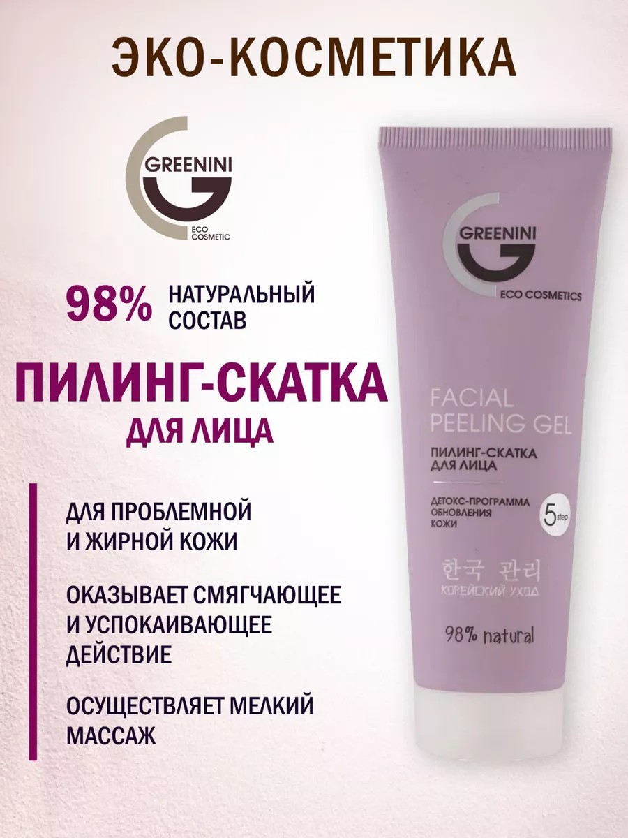 GREENINI Пилинг-скатка ЭКО косметика / очищение / от черных точек / обновление 75мл