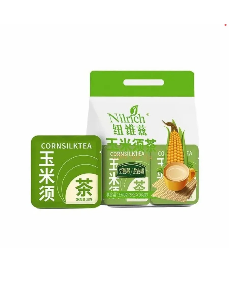 Чай из кукурузных рылец КУКУРУЗНЫЙ ШЕЛК. Зеленый лист Newitz кукурузный шелковый чай лопух кудзу корень гардении травяной чай 5 г по 30 пакетов в пакете. Напиток из кукурузных рылец обладает мягким желчегонным и мочегонным эффектом, устраняя застой желчи, помогает при боли в печени и желудке. Мягко действует при проблемах мочеполовой системы, в том числе простатита и цистита. Его часто советуют применять при заболеваниях почек, печени и желчных путей.Напиток из кукурузных рылец обладает мягким желчегонным и мочегонным эффектом, устраняя застой желчи, помогает при боли в печени и желудке. Мягко действует при проблемах мочеполовой системы, в том числе простатита и цистита. Его часто советуют применять при заболеваниях почек, печени и желчных путей. Пить чай из корня лопуха оказывает мочегонное, слабительное, профилактическое и лечебное действие при геморрое, детоксикации, очищении крови и питании кожи, регулировании уровня сахара в крови и жира в крови, снижении артериального давления, холестерина, укреплении селезенки и желудка, укреплении почек. Чай изготовлен на основе кукурузных рыльцев, он представляет собой уникальное средство для поддержания Вашего организма в отличной форме. Чай не содержит никаких добавок или сахара, что делает его идеальным выбором для тех, кто стремится к здоровому образу жизни. Этот чай можно принимать как на голодный желудок, так и при ночном бодрствовании. Он помогает устранить задержку жидкости в организме благодаря своим мочегонным свойствам. Кукурузные рыльца, являясь ключевым ингредиентом, богаты витамином Е, винной кислотой и другими полезными веществами, которые способствуют выводу избыточной жидкости из организма. Чай Нилрич также поддерживает сбалансированное питание, что делает его идеальным дополнением к Вашей диете. Вы можете наслаждаться его вкусом и преимуществами в любое время дня. Этот продукт основан на традиционных знаниях китайской медицины и обеспечивает Вас безопасным и нетоксичным способом поддержания Вашего здоровья. В упаковке содержится 30 пакетиков по 5 грамм каждый, общей массой 150 грамм, что обеспечивает вам долгое и приятное употребление. Состав: кукуруза, гречиха татарская, кукурузные рыльца, лопух большой, корень пуэрарии волосистой, гардения жасминовидная.