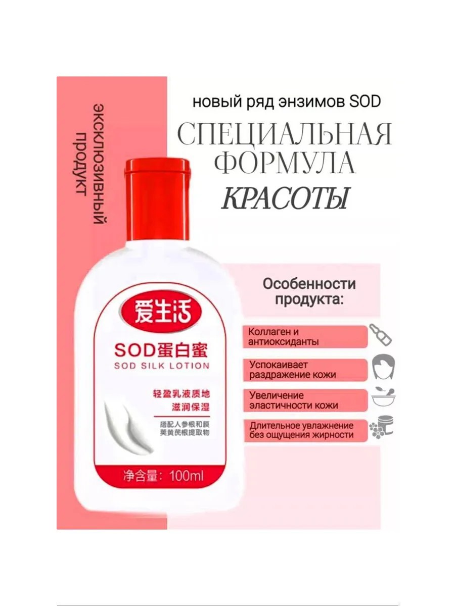 Маточное молочко защищает коллаген и эластин. Использование SOD FACE CREAM поможет вам достичь здорового, и сияющего вида кожи.