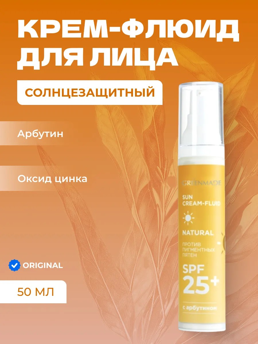 Greenmade Солнцезащитный Крем-флюид для лица Защита и питание SPF 25 с арбутином, 50 мл