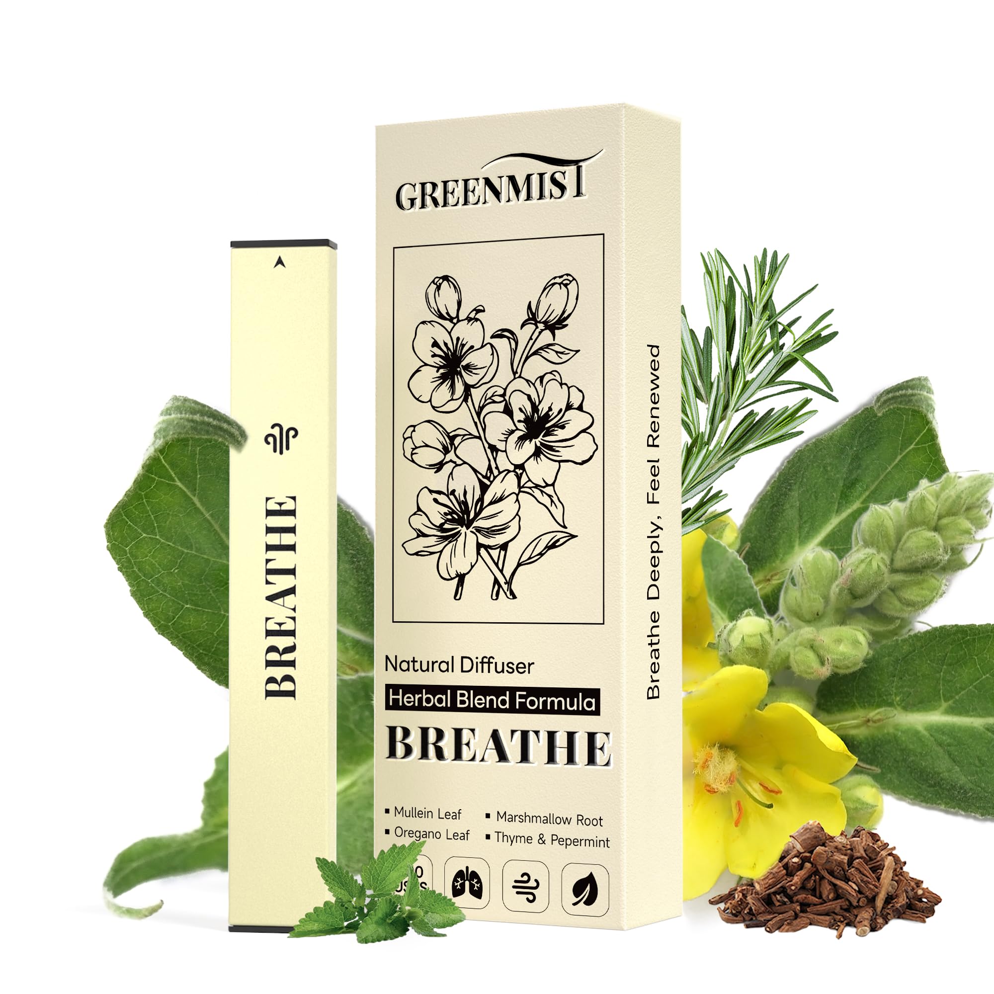 Tired of stuffy airways, occasional respiratory discomfort, or craving a natural way to support easy breathing on the go? Meet your new daily wellness essential: the GreenMist Mullein Diffuser Pen – a premium herbal diffuser crafted to soothe, refresh, and support respiratory health with a synergistic blend of nature's most trusted botanicals. Designed as a targeted respiratory support solution, this mullein diffuser pen combines Mullein (a revered herb for soothing airways), Marshmallow Root (known for its gentle calming properties), Thyme, Oregano Leaf (both supporting respiratory wellness), and invigorating Mint. Each ingredient works in harmony to create a refreshing, effective blend that eases discomfort and promotes clear, easy breathing – no harsh chemicals, synthetic fragrances, or artificial additives. Unlike temporary fixes, this all-natural herbal diffuser delivers gentle, consistent support that's safe for daily use, whether you're navigating dry indoor air, post-workout congestion, or simply seeking to breathe more freely. What sets this diffuser pen apart? An impressive 800 uses – that's weeks of reliable respiratory support, outlasting disposable alternatives and offering unbeatable value. Its compact, pen-sized design fits seamlessly into your pocket, purse, or gym bag, making it your go-to companion for work, hikes, travel, or anytime you need a quick refresh. A whiff of its crisp, herbaceous aroma not only soothes airways but also provides an invigorating sensory boost, turning moments of discomfort into a calming self-care ritual. Crafted with purity in mind, every batch is made with 100 natural botanicals, free from toxins, parabens, or synthetic fillers. Whether you're prioritizing respiratory wellness, seeking relief from occasional congestion, or simply want to breathe easier throughout the day, this mullein diffuser pen delivers gentle, plant-powered care that works with your body. It's perfect for outdoor enthusiasts, office workers, frequent travelers, or anyone who values clean, effective respiratory support. More than just a diffuser, the GreenMist Mullein Diffuser Pen is a commitment to holistic wellness – one breath at a time. It's designed to fit your busy lifestyle, offering convenient, on-the-go relief without compromising on quality or natural ingredients. Ready to breathe easier and support your respiratory health naturally? Add the GreenMist Mullein Diffuser Pen to your cart today and experience the refreshing, soothing power of botanicals – 800 uses of pure respiratory comfort awaitPortable On-the-Go Design – Compact, pen-sized diffuser fits in pockets bags, perfect for work, hikes, travel, or anytime you need quick, targeted respiratory support and refreshing breathing. 100 All-Natural Formula – Crafted with pure botanicals, no artificial additives, harsh chemicals, or synthetic fragrances—safe for daily use and gentle on the respiratory system. Synergistic Botanical Blend – Mullein Marshmallow Root soothe, Thyme Oregano Leaf support respiratory health, and Mint adds a refreshing boost—each ingredient works in harmony for effective, gentle care. 800 Long-Lasting Uses – Offers exceptional value with 800 applications, outlasting disposable alternatives as a reliable, long-term respiratory support companion. Targeted Respiratory Support – As a premium mullein diffuser pen, this herbal diffuser blends Mullein, Marshmallow Root, Thyme, Mint Oregano Leaf to soothe airways and promote easy breathing—natural relief for daily respiratory comfort.