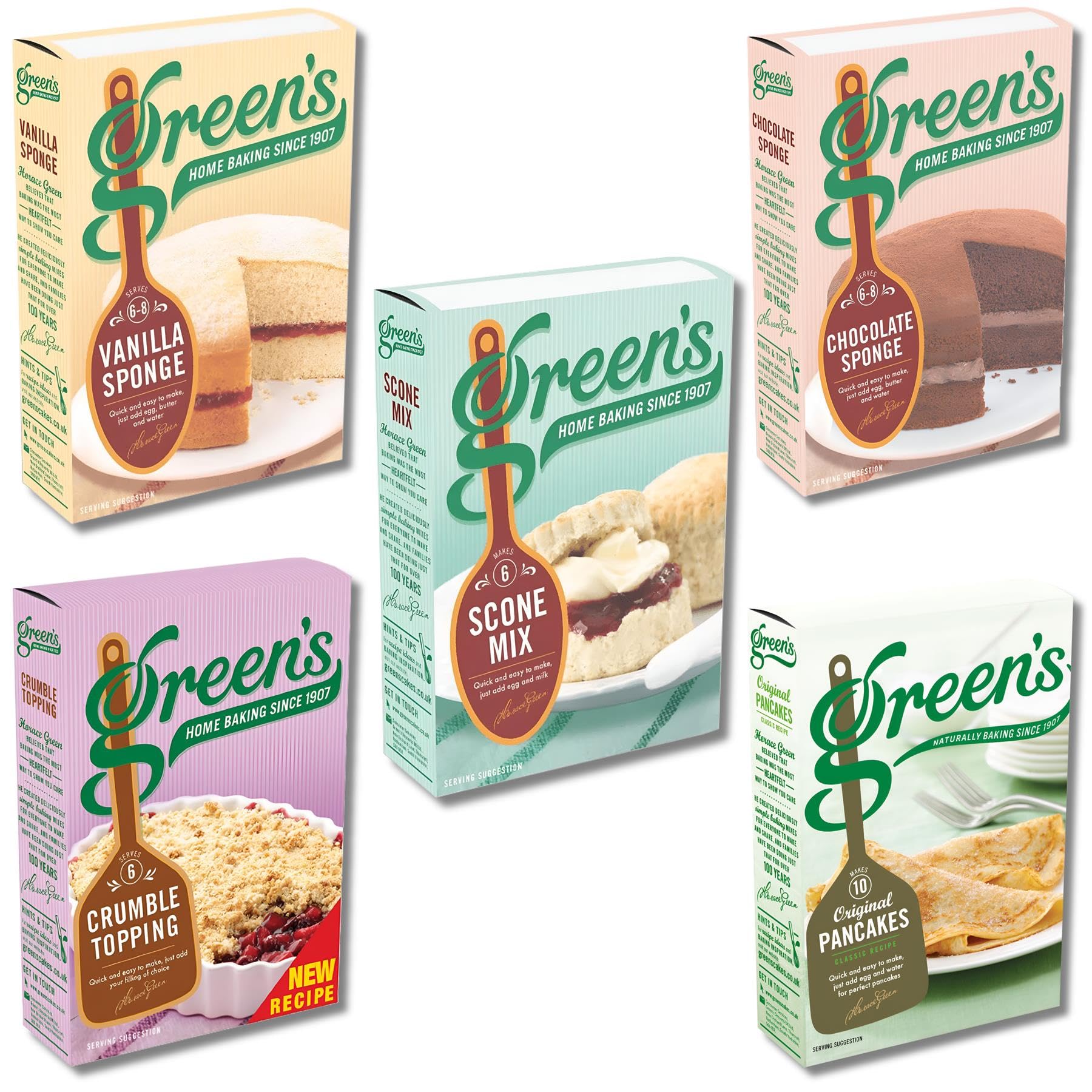 Greens CakeFlour Pick N Mix - Create Custom Combo with 4+ Flavours | Scone Mix Vanilla Sponge Mix Pancake Mix Chocolate Sponge Mix | Gift Set for CakeFlour Lovers - Pack of 4