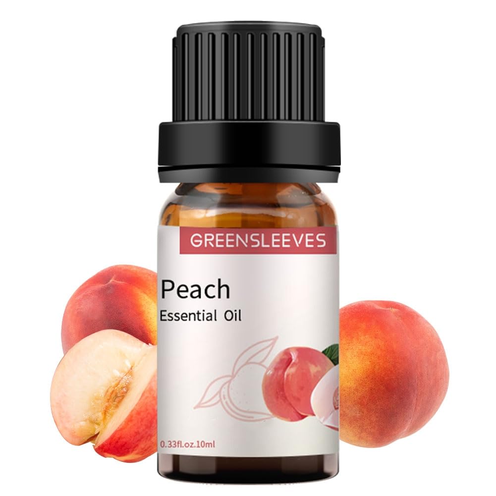 GREENSLEEVES Peach Essential Oil, 10ml Pure Plant-Based Fruit Fragrance Oil for Aromatherapy, Essential Oils for Diffuser, Air Freshener, Massage, Bath Bomb, Scented Candle Soap Making
